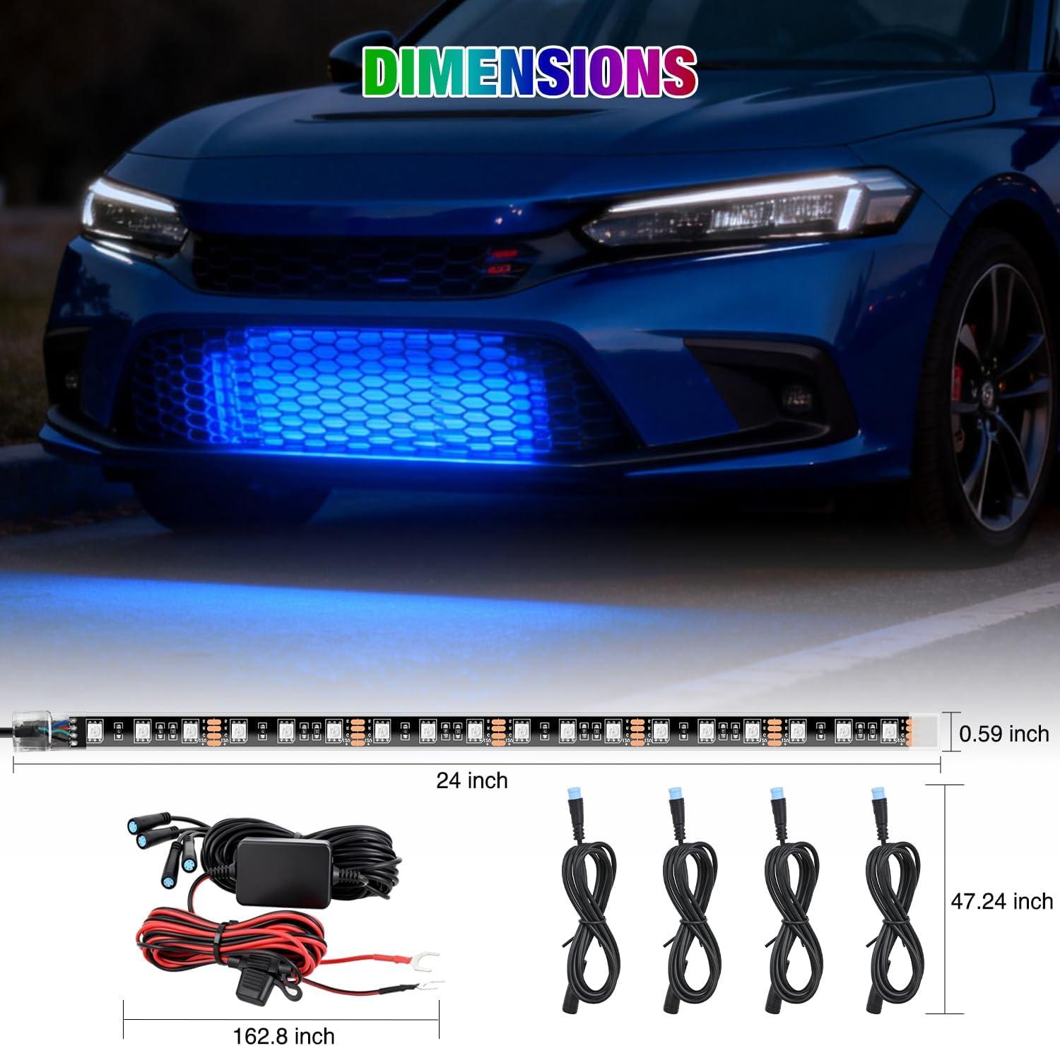 Nilight 4Pcs 24inch LED Grille Lights 144 LEDs RGB Multi Color Exterior Lighting Kit DIY Sound Active Function Music Mode with APP Control and Remote for Cars Van SUV Truck