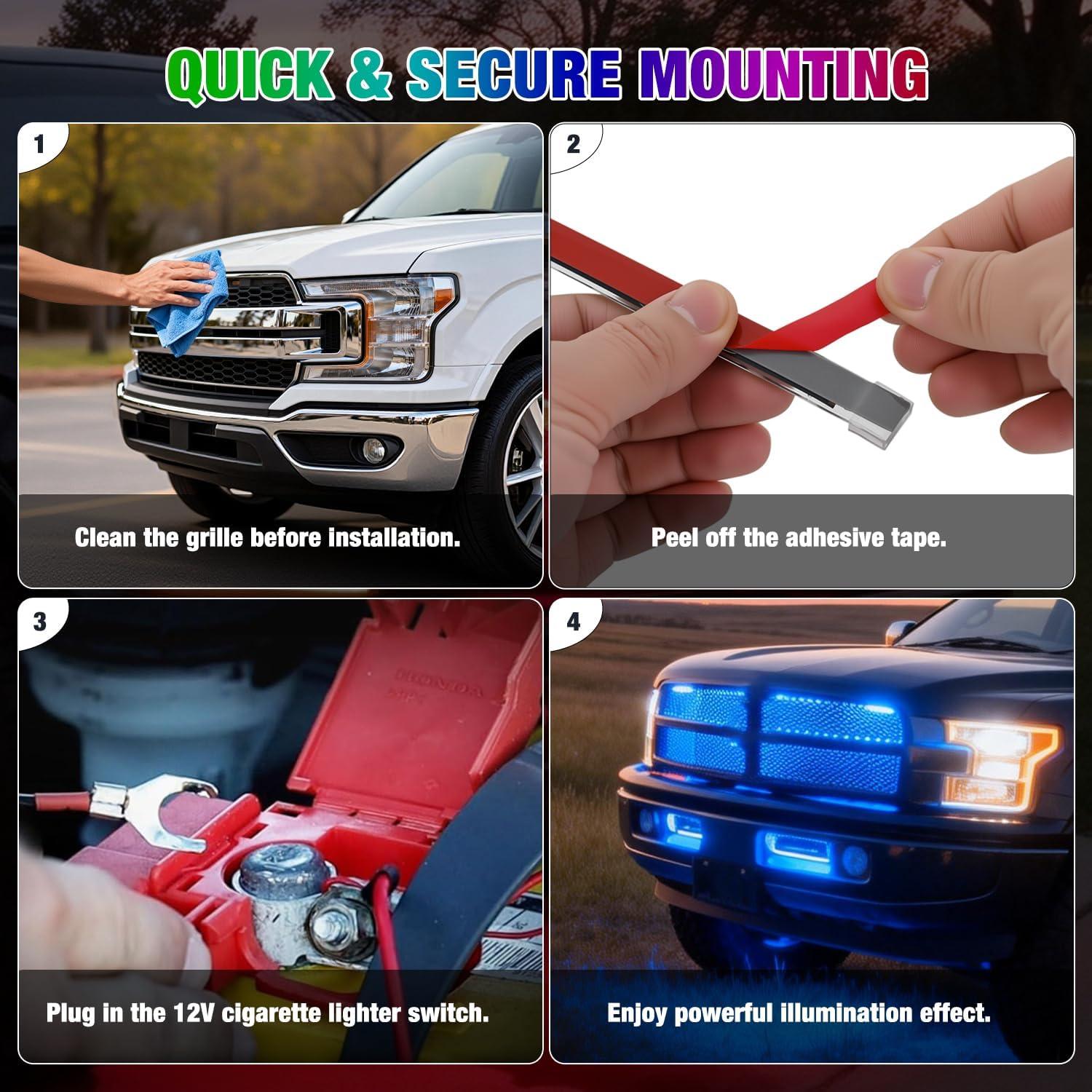 imageNilight 4Pcs 12inch LED Grille Lights 72 LEDs RGB Multi Color Exterior Lighting Kit with Sound Active Function and Wireless Remote Control for Cars Van SUV Truck