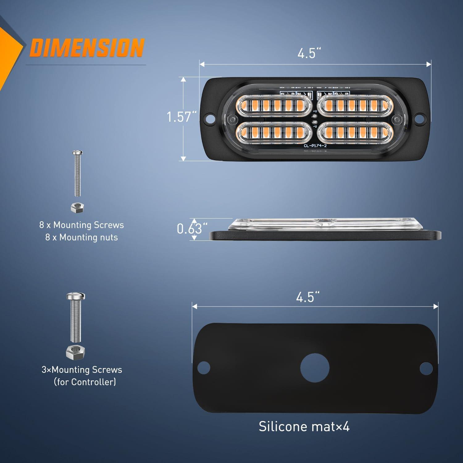 imageNilight 4PCS 24LED Emergency Strobe lights 12V 24V Amber Surface Mount Grille Hazard Safety Warning Light Sync Feature Side Flashing Marker Flash for Car Truck CampersAmber White wController