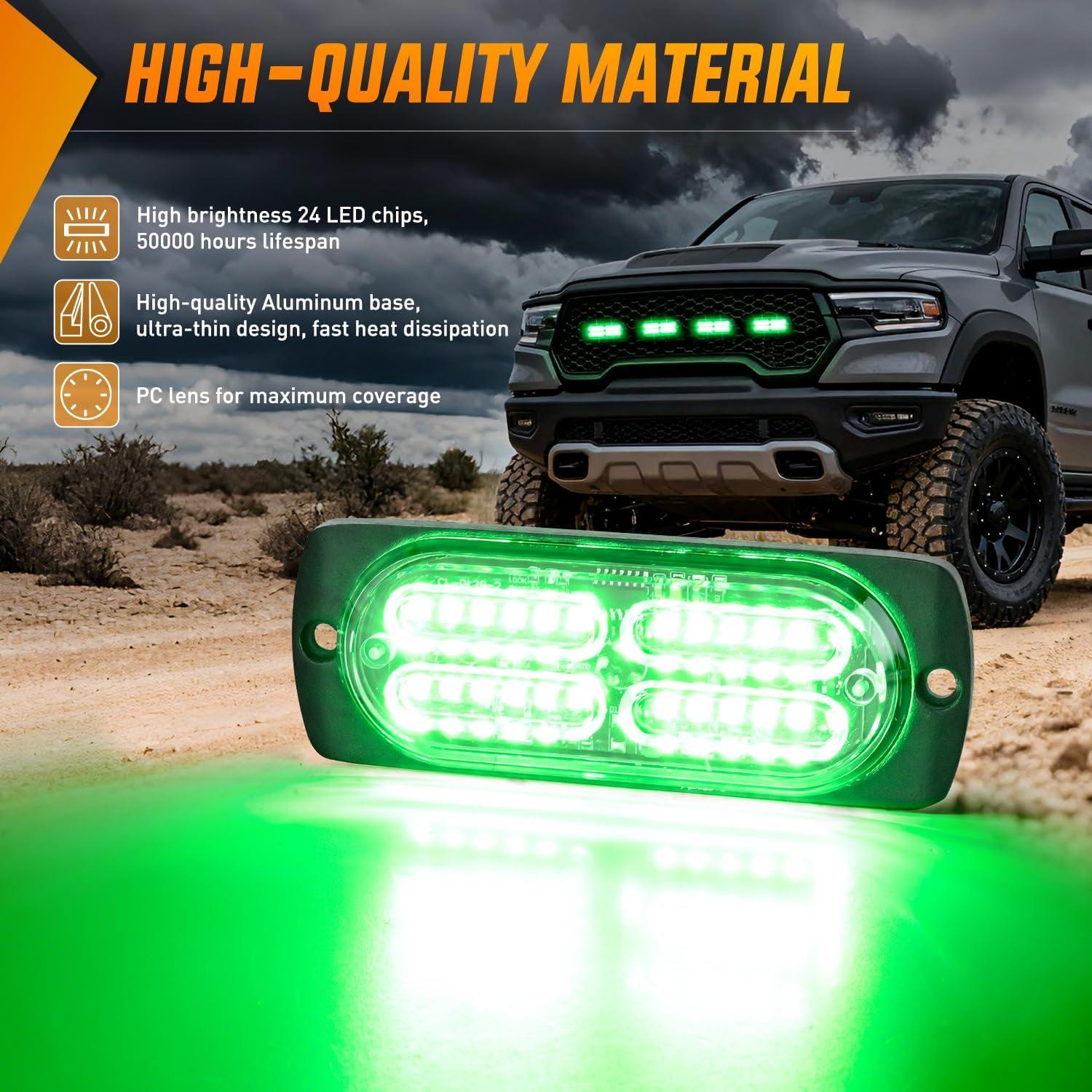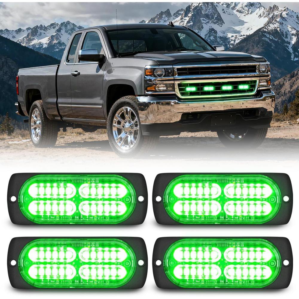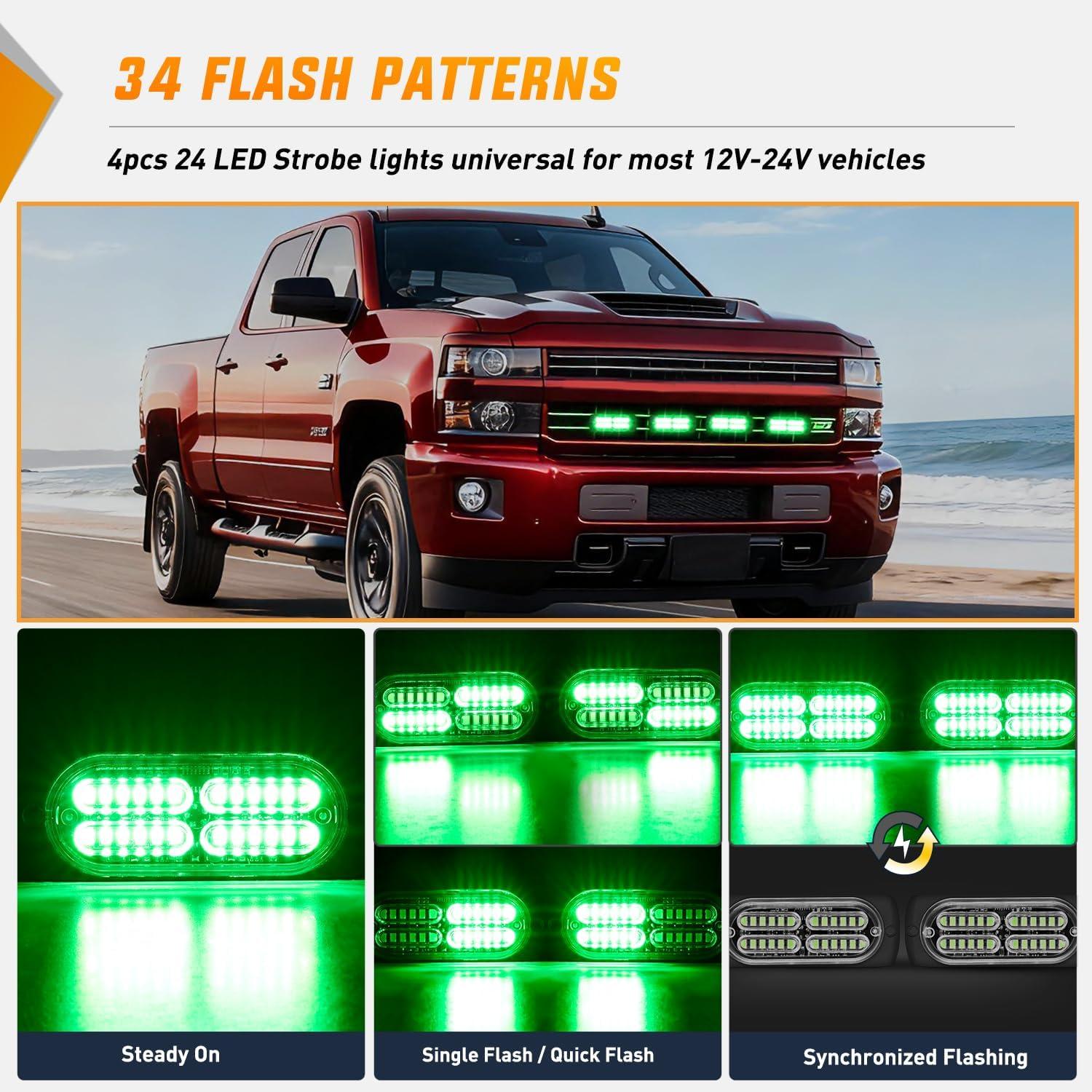 imageNilight 4PCS 24LED Emergency Strobe lights 12V 24V Amber Surface Mount Grille Hazard Safety Warning Light Sync Feature Side Flashing Marker Flash for Car Truck CampersGreen