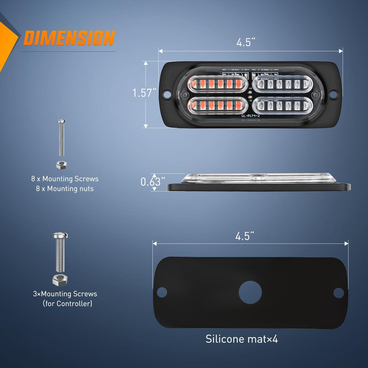 Applications: This strobe light is suitable for any 12-24V vehicle such as trucks, construction vehicles, tractors, snowplows, SUVs, campers, trailers etc. It can be mounted on any surface of the car such as the sides, grille in front of the vehicle, and rear of the car. Package includes: 4pcs LED Strobe Lights, 4pcs Rubber Mats, 8x Mounting Screws