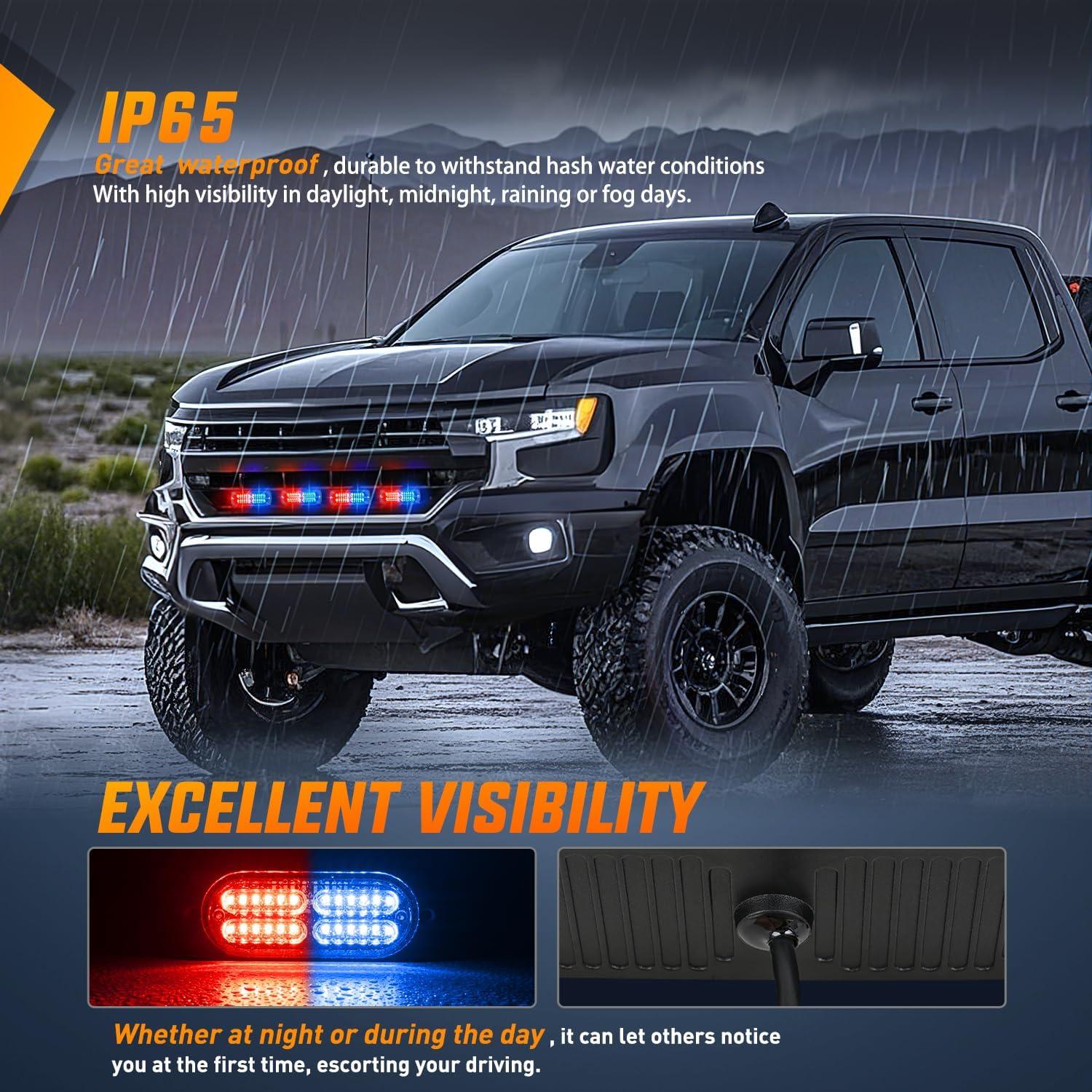Nilight 4PCS 24LED Emergency Strobe lights 12V 24V Amber Surface Mount Grille Hazard Safety Warning Light Sync Feature Side Flashing Marker Flash for Car Truck Campers(Red Blue)