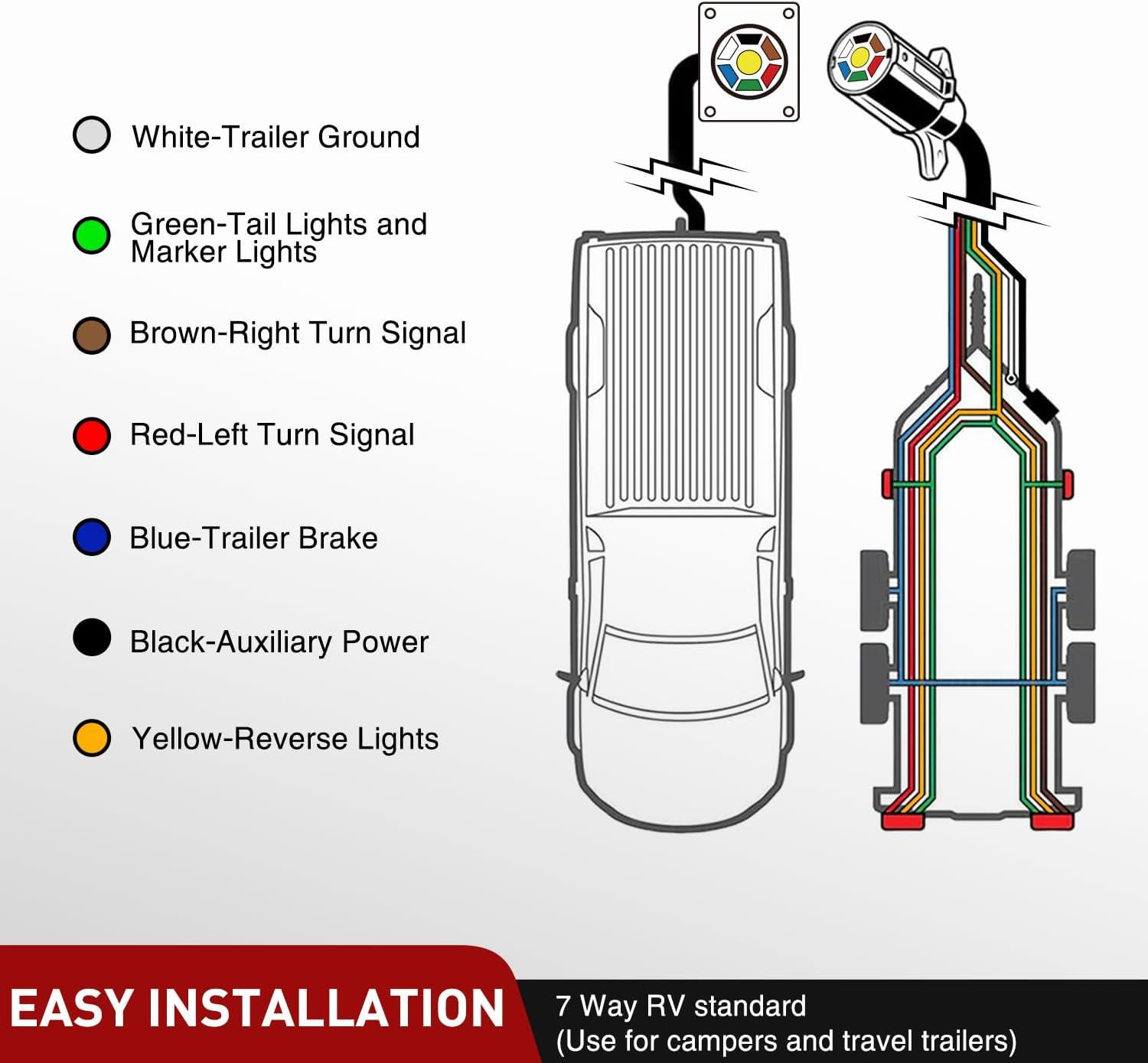 Versatile Applications: Perfect for connecting tail, brake, reverse, turn signals and auxiliary power of your trailers, RVs, campers, caravans, food vans and other towed vehicles. Please read the diagram carefully before any operations on the product