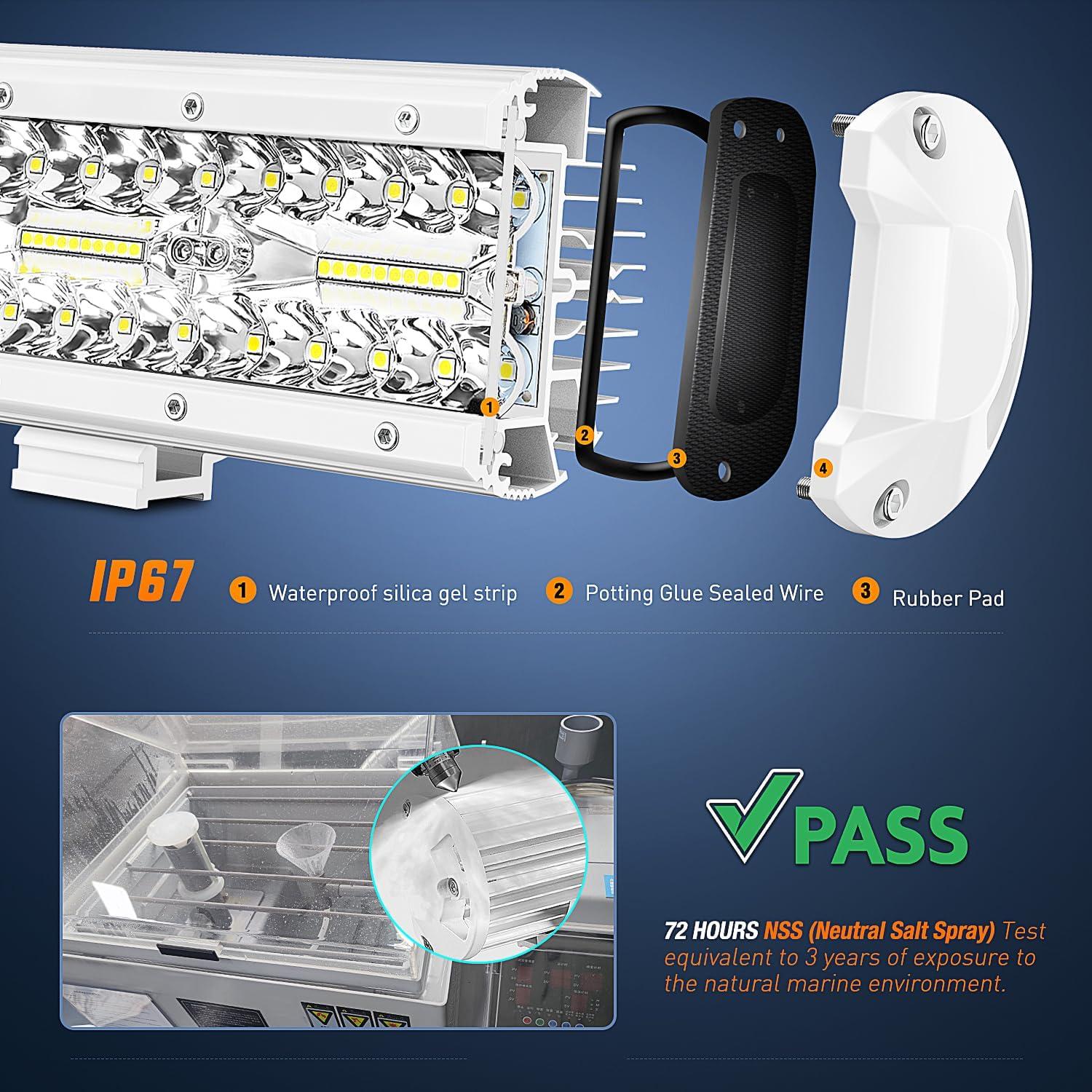 Purple Super Bright Combo Beam: Adopted 40pcs 3w chips, appropriate combination of spot beam and flood beam for wide spread and further distance illumination, allowing you to see the front and rear cars clearly in bad weather such as night or heavy fog, light up your night hunting, night ride or any other night activities