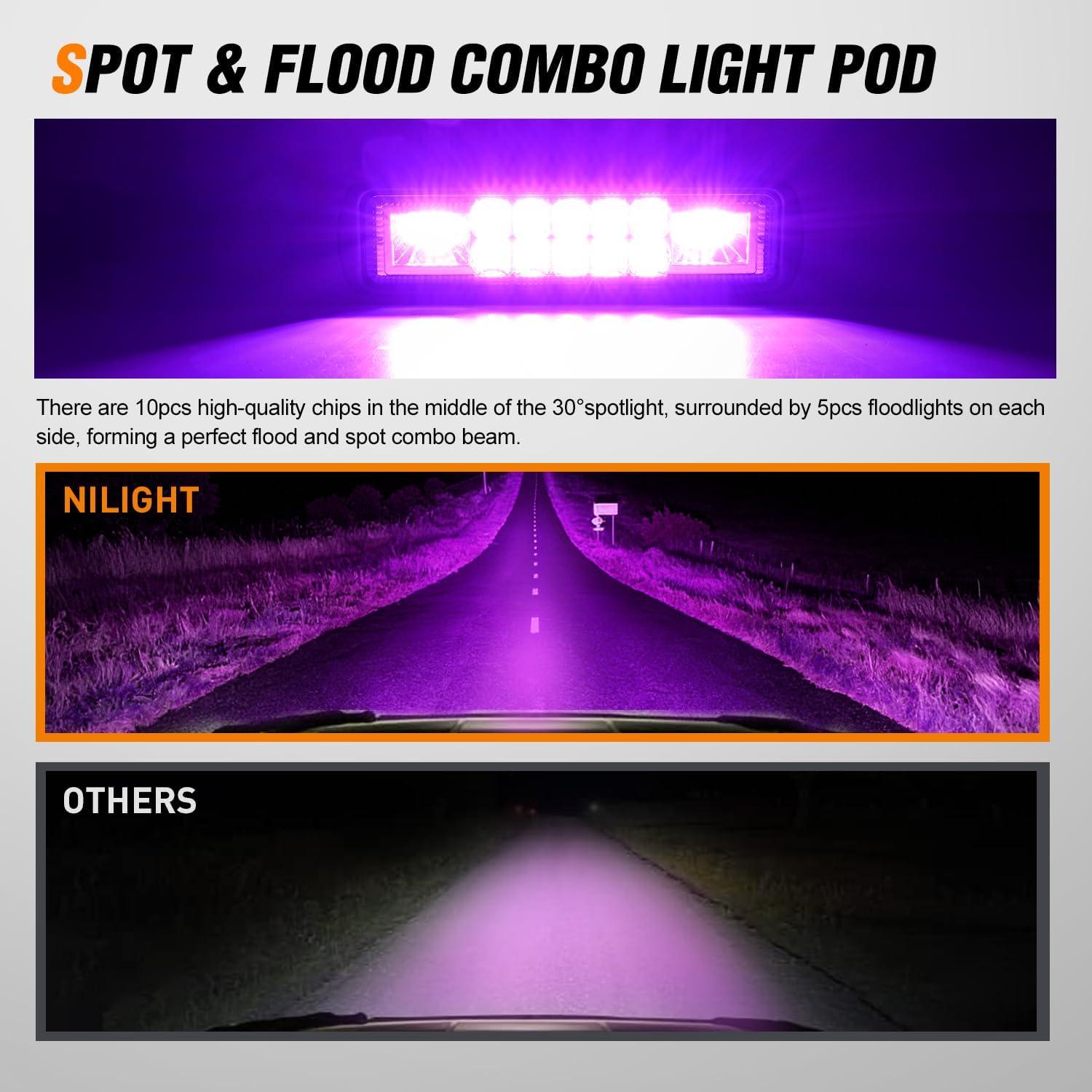 Nilight 6 Inch Blue LED Light Pods 2 PCS 60W Flood Spot Combo Beam Off Road Driving Fog Fishing Hunting Emergency Safety Signal Deck Trailer Lighting for 12V 24V ATV UTV Pickup Truck Tractor Boat(60W Led Pods 2Pcs Purple)