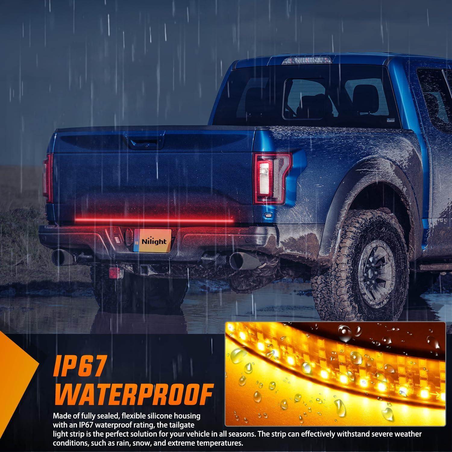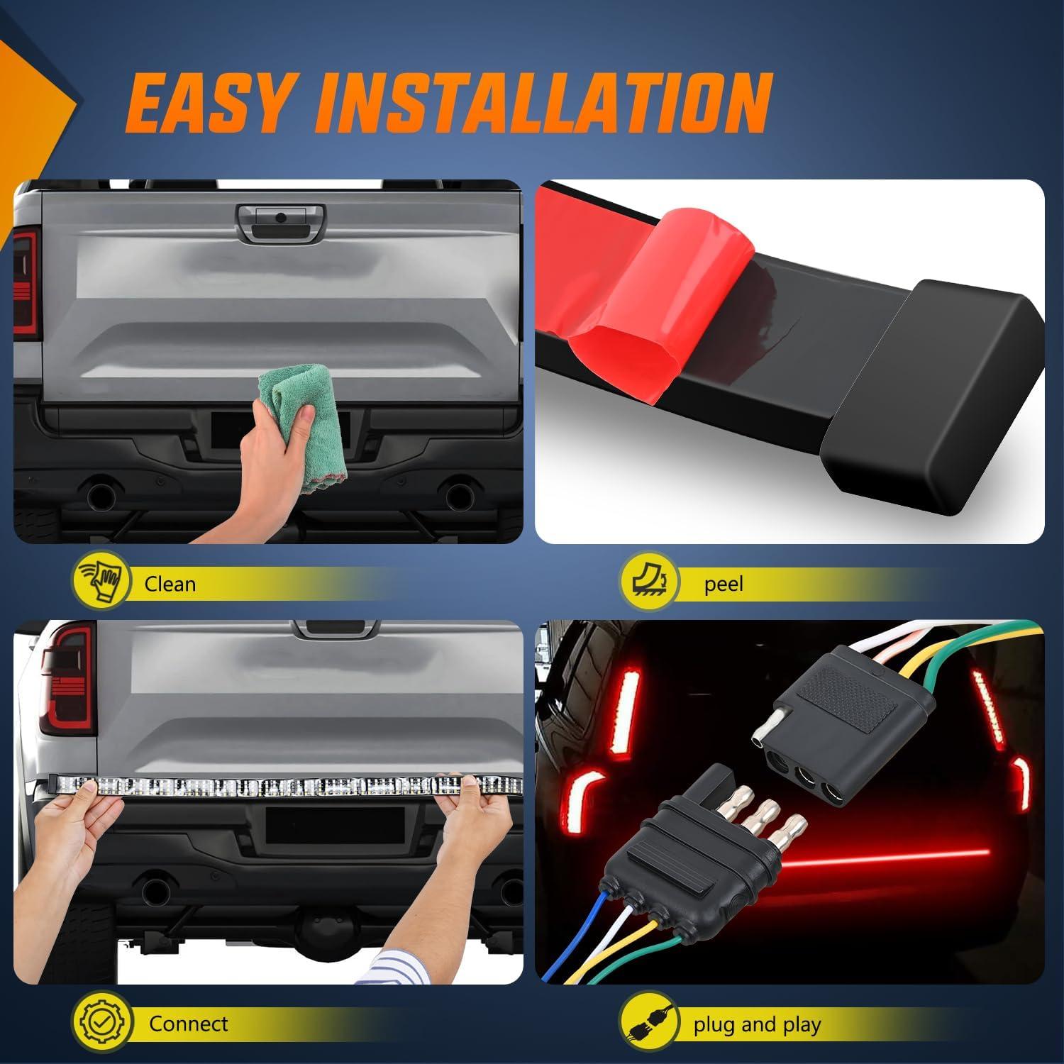 【Illuminate Your Safety】 The 60 inch tailgate light strip with 360 high-intensity LED chips, which can emit ultra-bright lighting, The rear truck light is eye-catching to provide clear visual alerts to following drivers, enhancing road safety