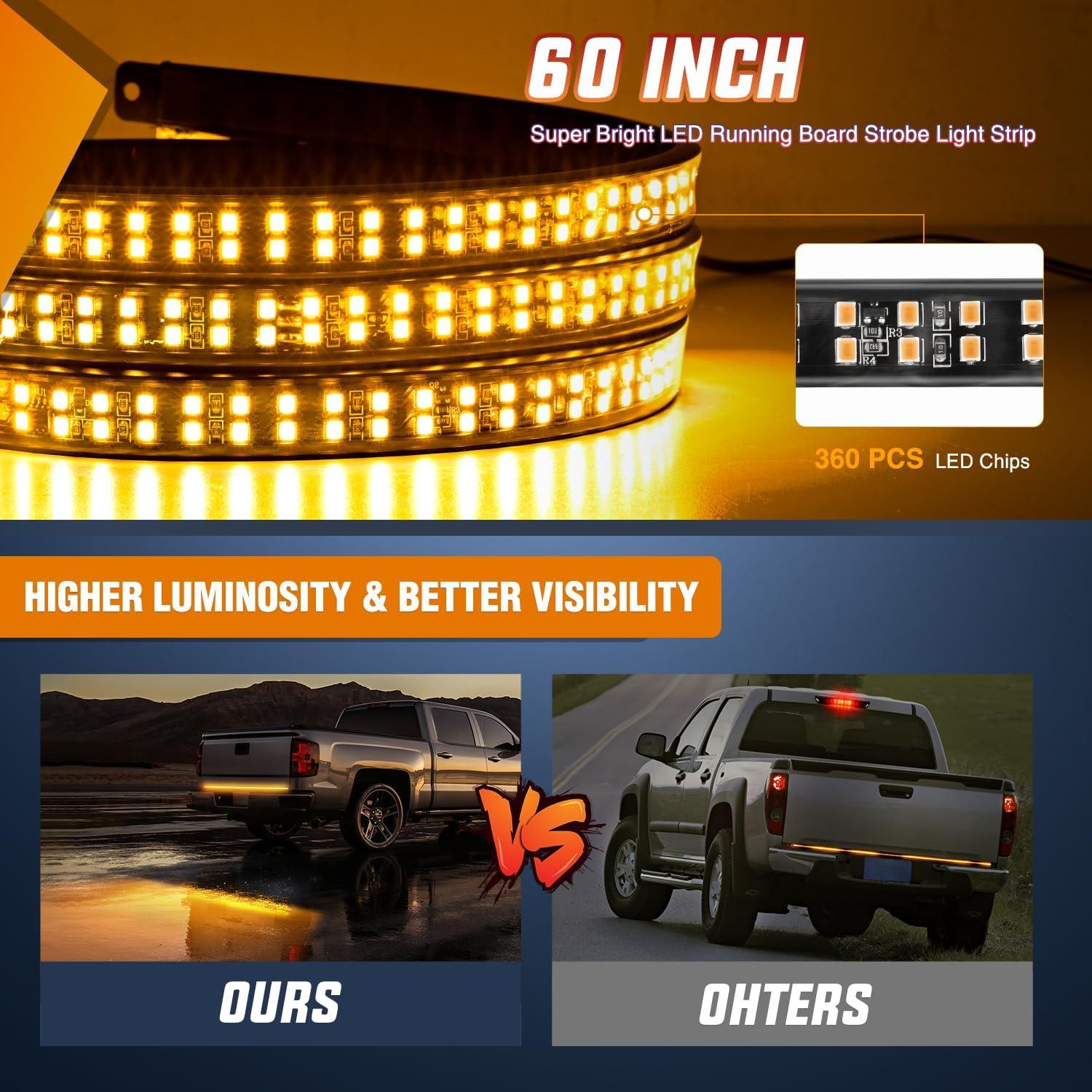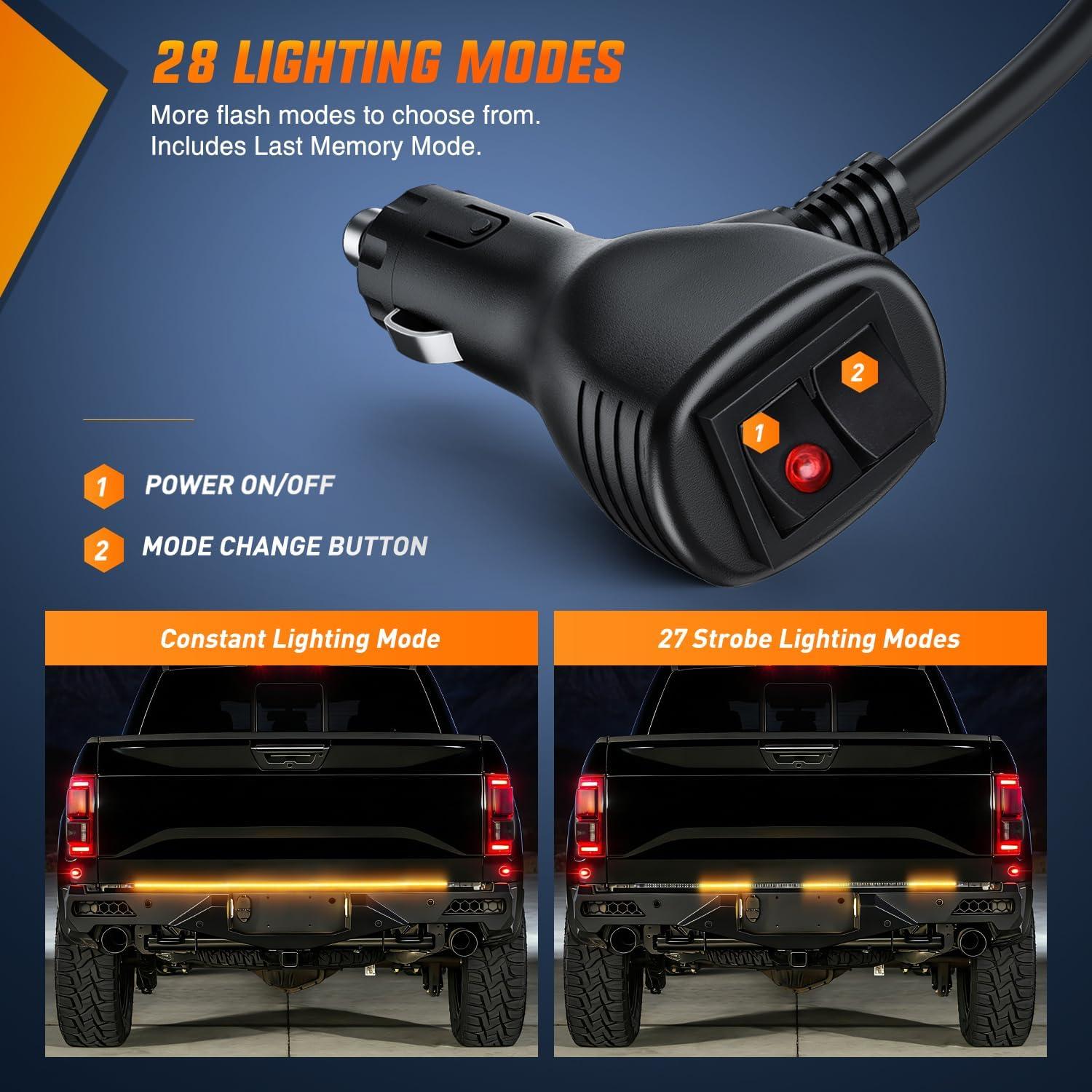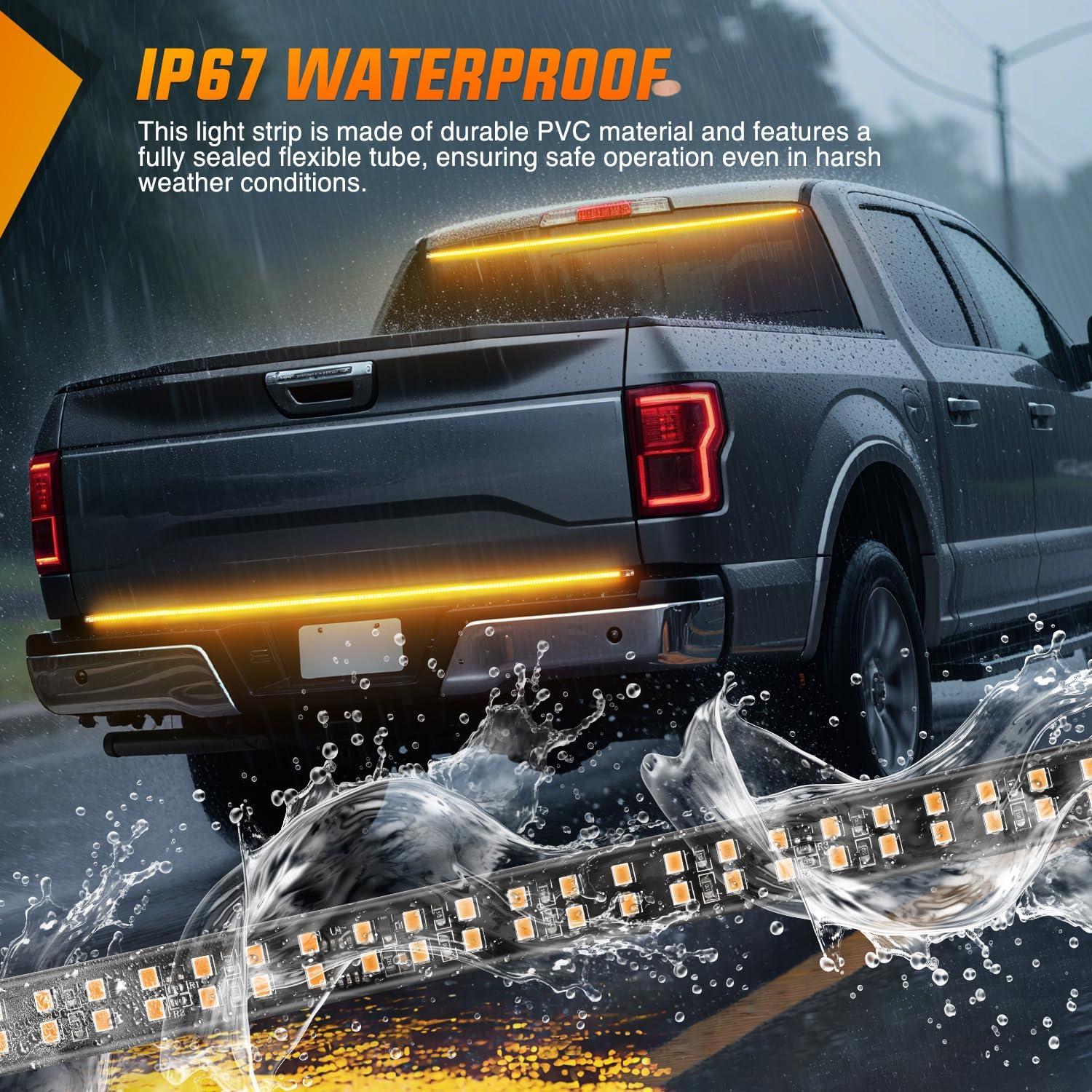 【Illuminate Your Safety】 The 60 inch tailgate light strip with 360 high-intensity LED chips, which can emit ultra-bright lighting, The rear truck light is eye-catching to provide clear visual alerts to following drivers, enhancing road safety