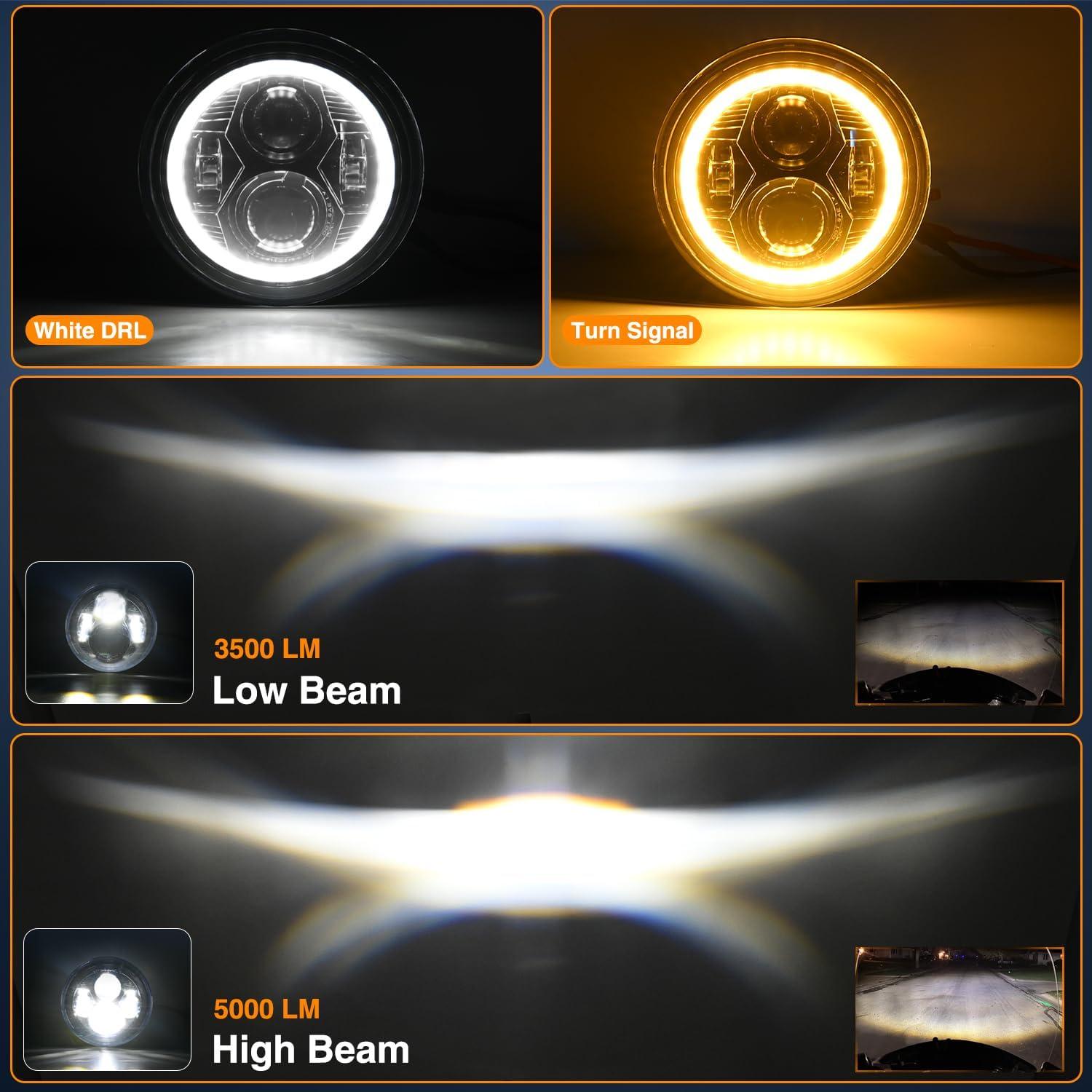 【Worth Upgrading】5000LM@High Beam, 3500LM@Low Beam of the headlight, 1080LM per fog light, bright enough, provide a farther, wider and clearer lighting field of view than halogen. Compared with halogen, halo and turn signal are added, much safer for night drving and will not glare the oncoming drivers. DOT-approved, legal on the road