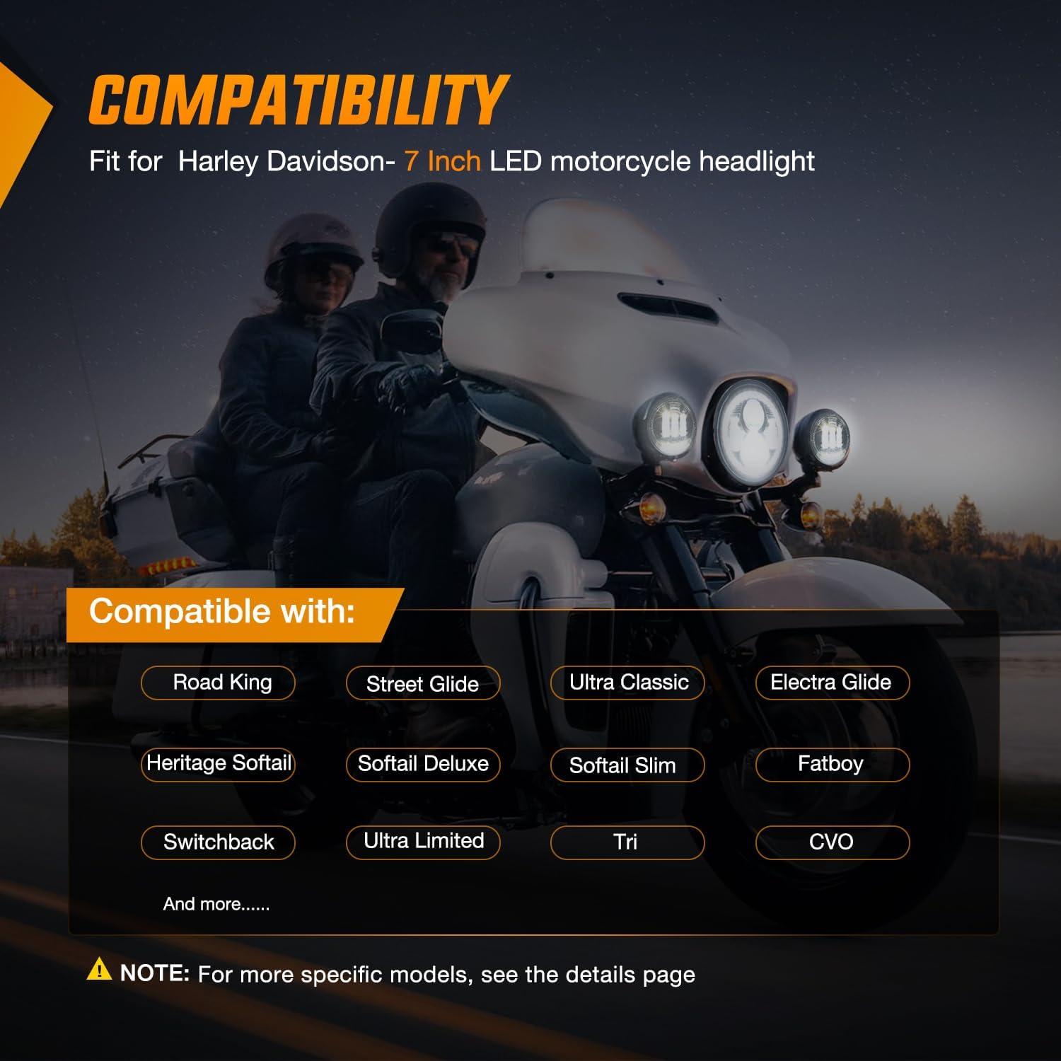 【Compatibility】Widely suitable for most motorcycles with 7 inch headlight and 4.5 inch fog passing light, Road King, Street Glide, Ultra Classic, Electra Glide, Heritage Softail, Softail Deluxe, Softail Slim, Fatboy, Switchback, Ultra Limited, Tri, CVO, 1989-2022. (Please check the product description for more detailed information)