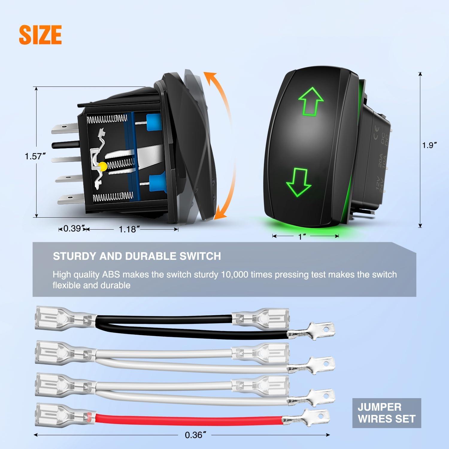Nilight 7 Pin Rocker Switch Jumper Wires Set for 7Pin Toggle On/Off Rocker Switch Wiring fot Automotive Polaris Ranger RZR ATV Console Switch Install 1 Set Switch Not Included(ARROWS 7PIN Green)