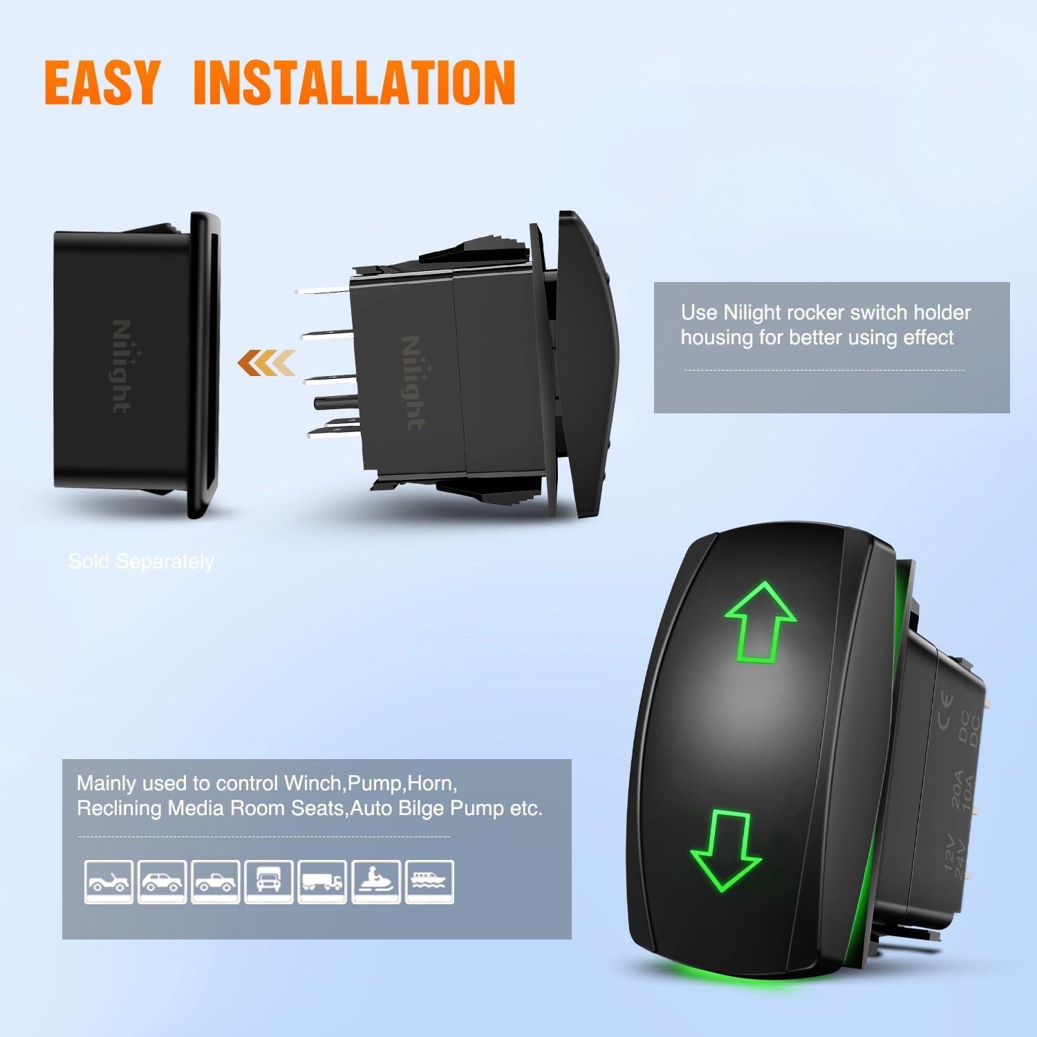 imageNilight 7 Pin Rocker Switch Jumper Wires Set for 7Pin Toggle OnOff Rocker Switch Wiring fot Automotive Polaris Ranger RZR ATV Console Switch Install 1 Set Switch Not IncludedARROWS 7PIN Green
