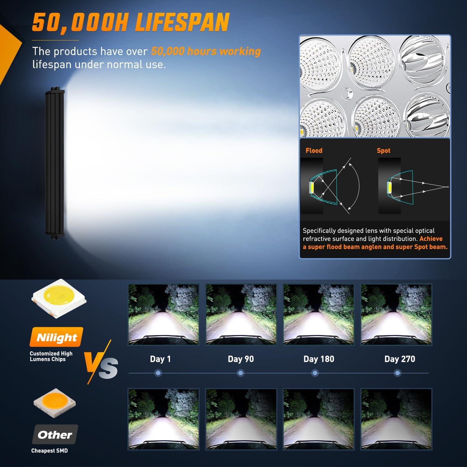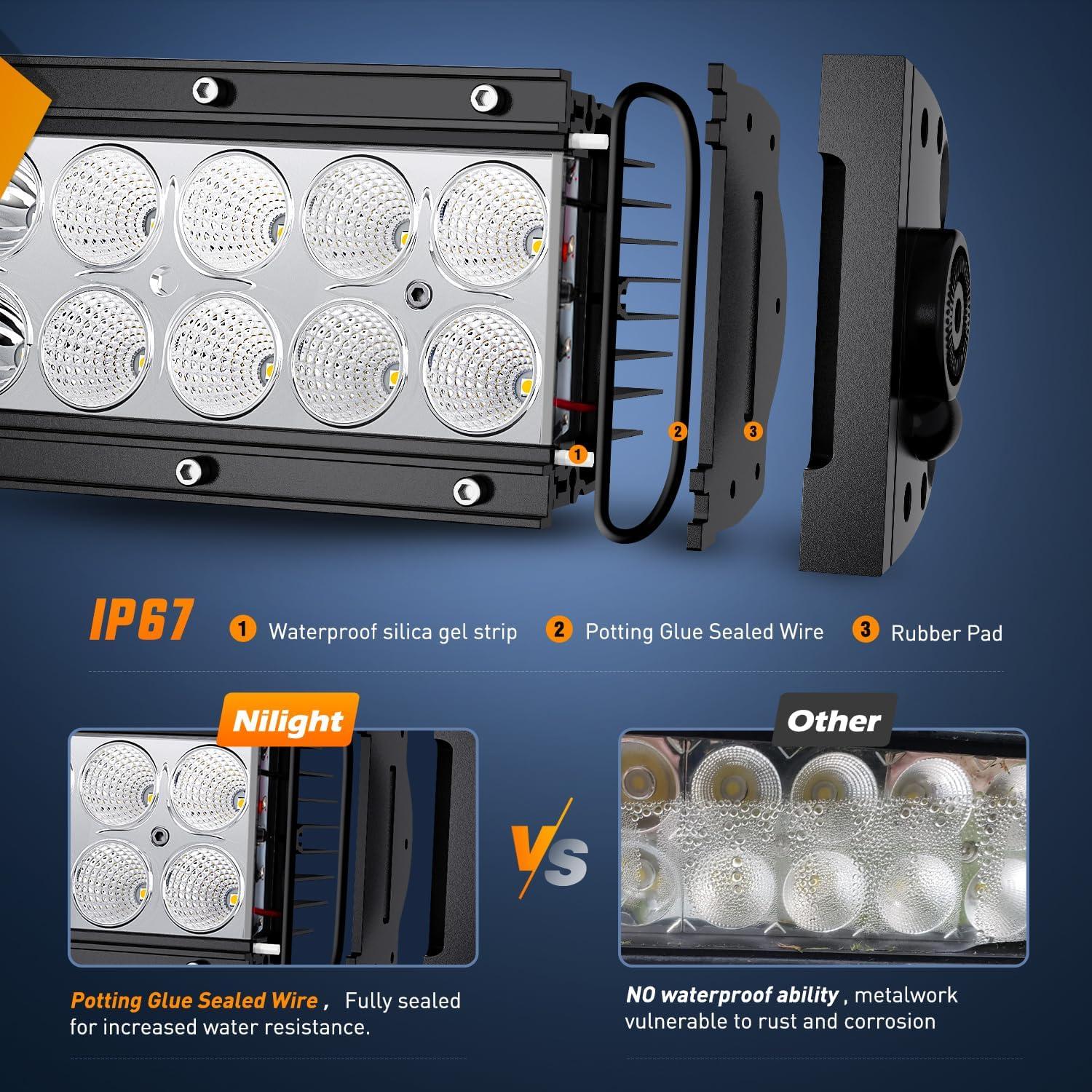 Nilight 73003C-A 22Inch 150W Double Row 15000LM 7D Flood Spot Combo Beam LED Light Bar(22Inch 150W 7D Light Bar)