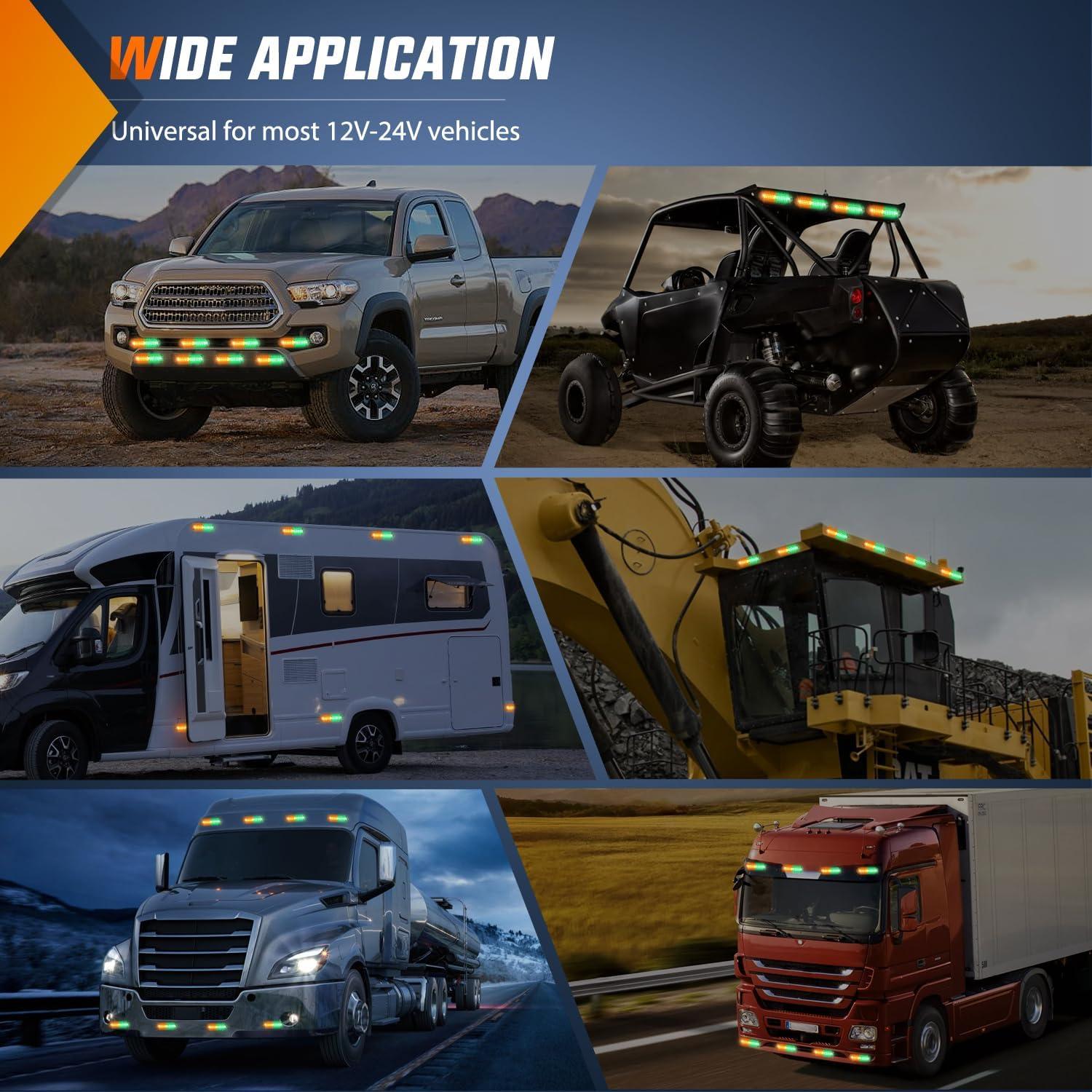 Nilight 8PCS LED Strobe lights 12V Sync Feature Amber White 12 24LED Emergency Hazard Warning Lights with Controller for Cars Trucks RVs Campers, 2 Years Warranty(Amber/Green Lights 8Pcs)