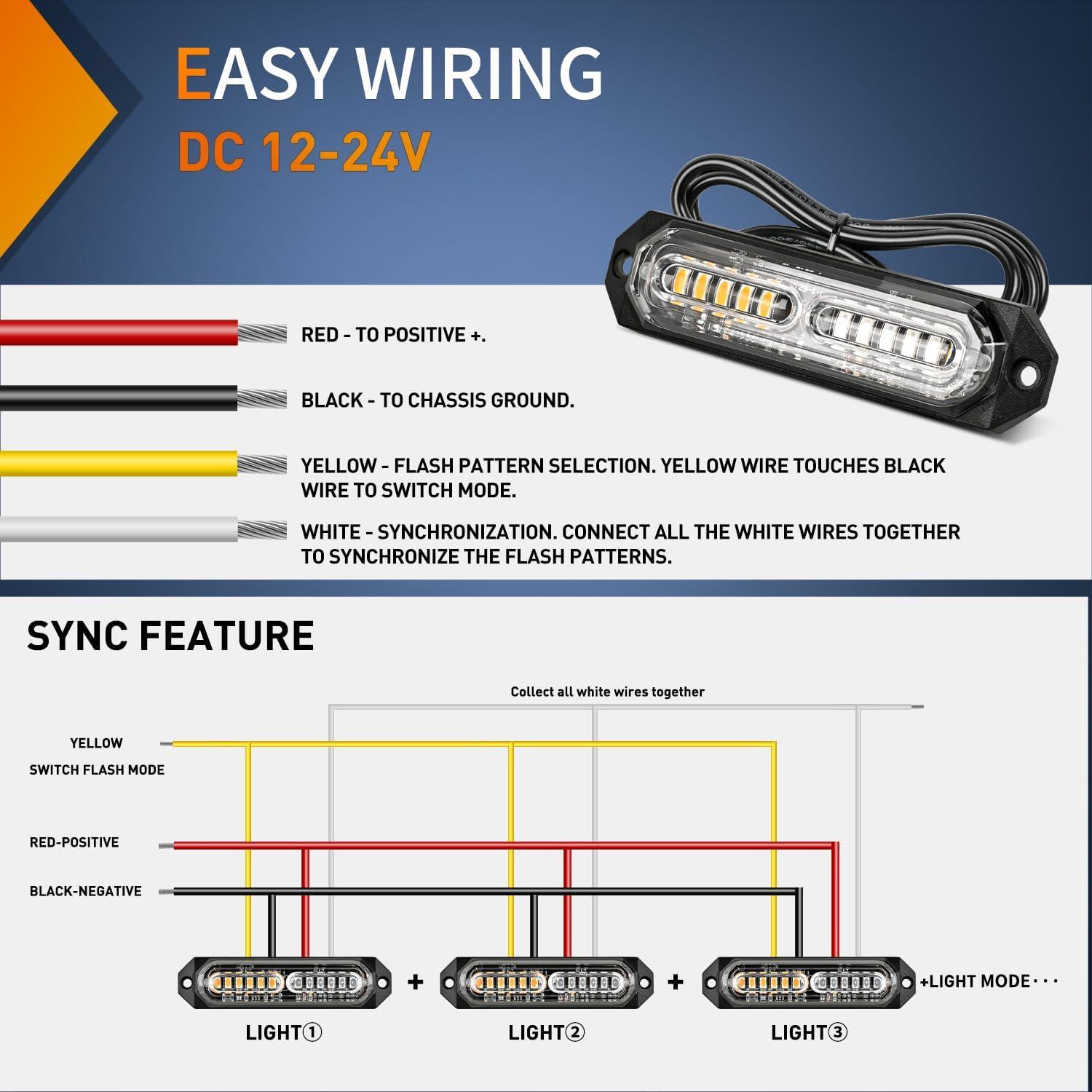 Easy to Install: Upgrade design, this emergency strobe lights with main control box for free wiring installation, it can perfectly synchronized your lights. 11.48FT long wire of each raw of light can meet the installation needs of various large vehicles. Protective mounting gaskets and screws are included for easy installation.