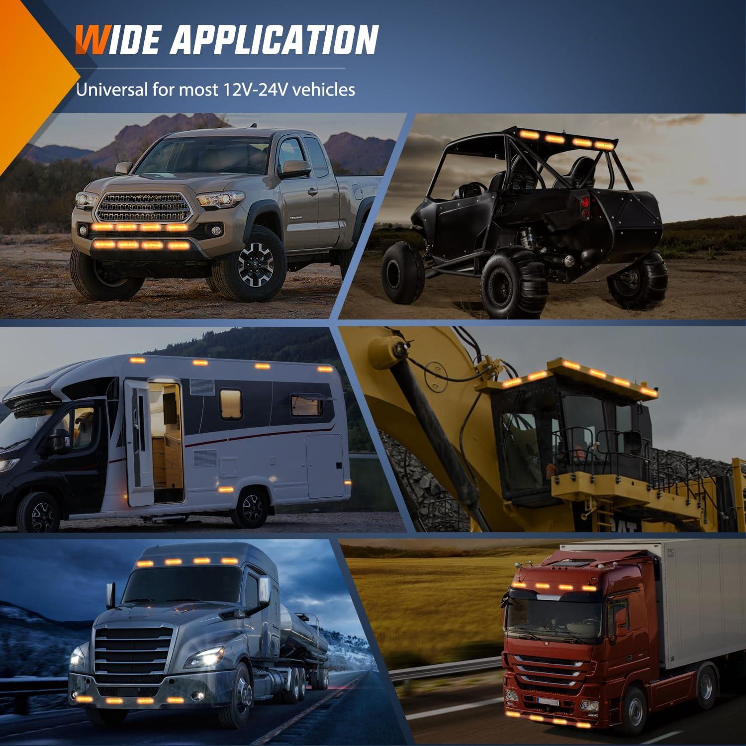 Nilight 8PCS LED Strobe lights 12V Sync Feature Amber White 12 24LED Emergency Hazard Warning Lights with Controller for Cars Trucks RVs Campers, 2 Years Warranty(Amber Lights 8Pcs)