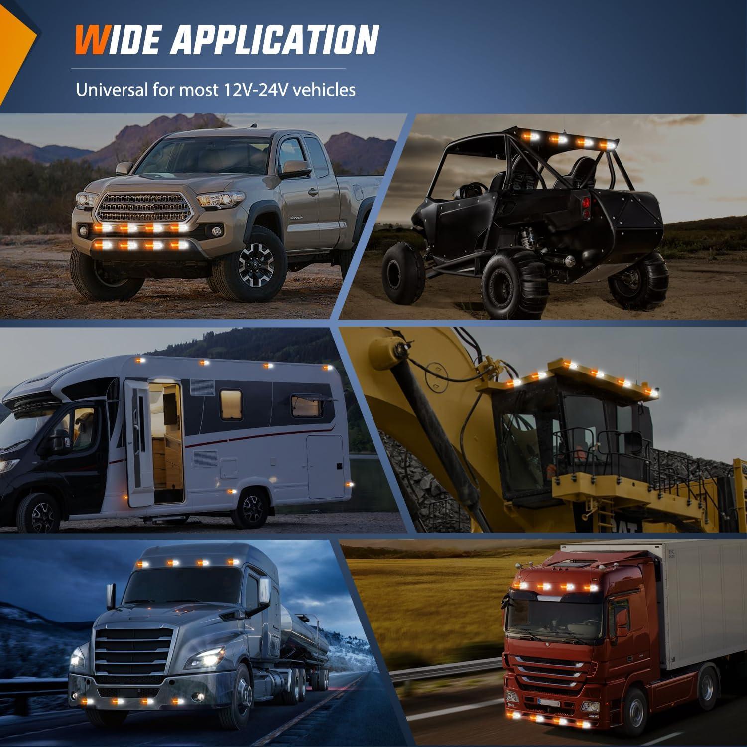 Nilight 8PCS LED Strobe lights 12V Sync Feature Amber White 12 24LED Emergency Hazard Warning Lights with Controller for Cars Trucks RVs Campers, 2 Years Warranty(Amber/White Lights w/Controller 8Pcs)