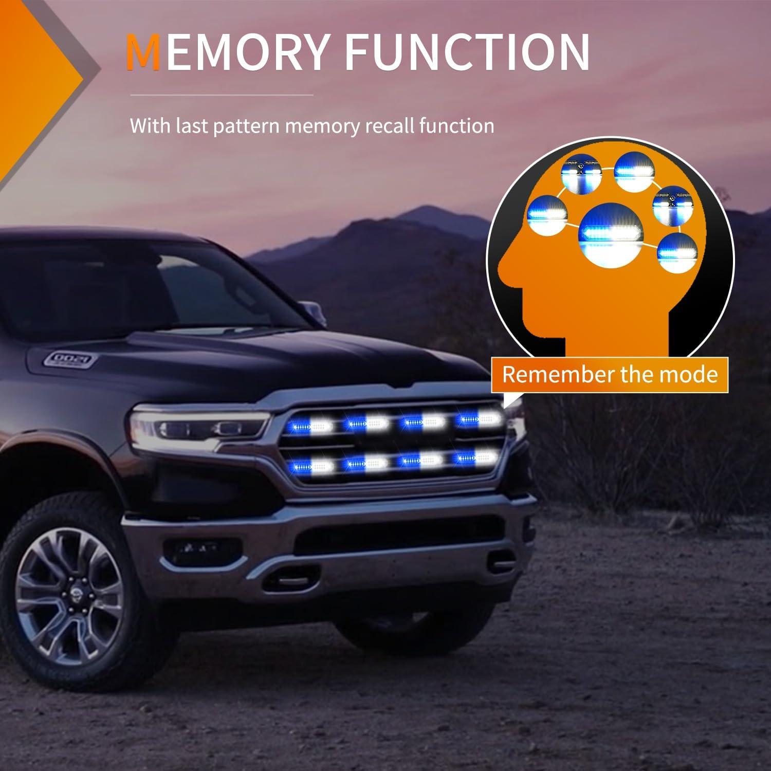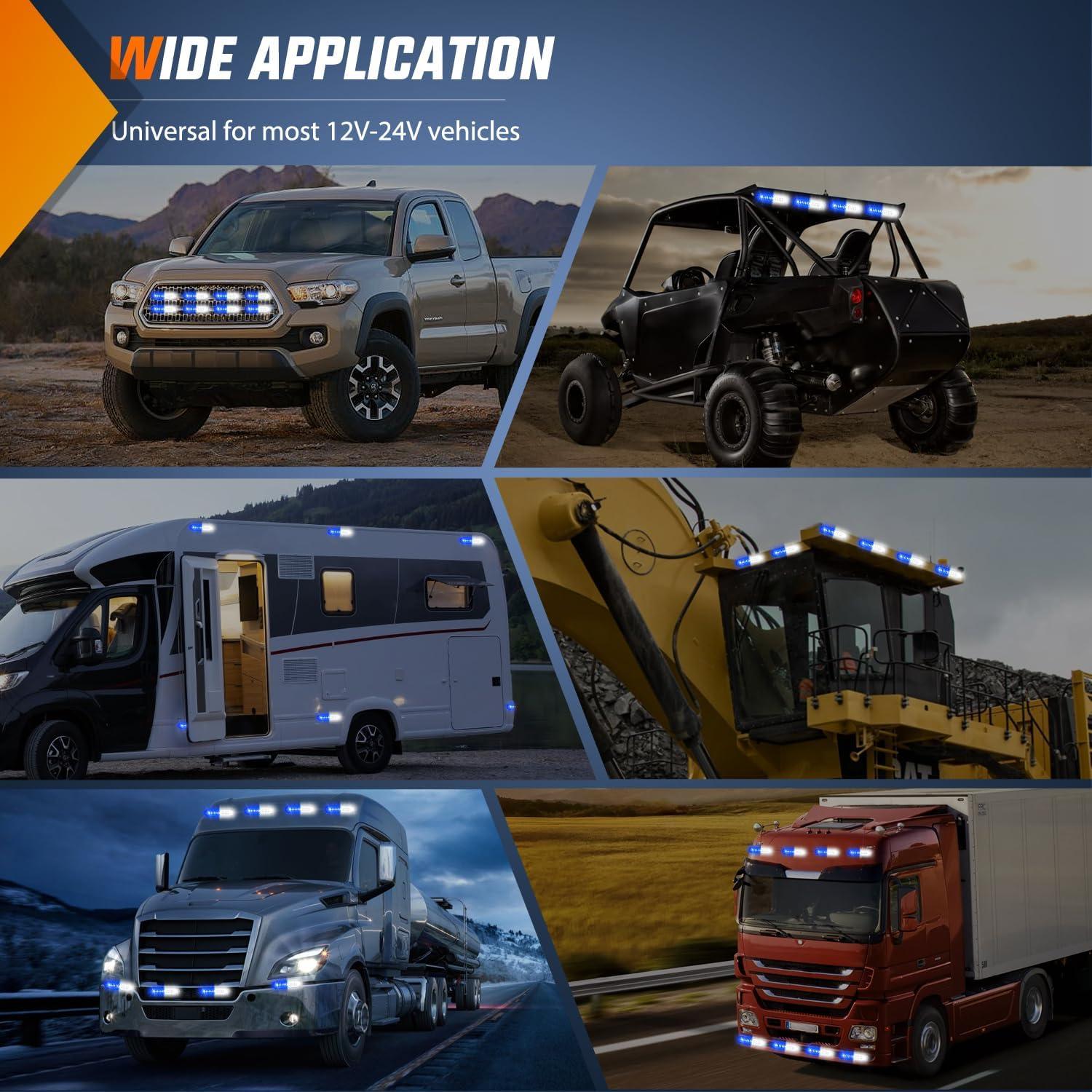 Nilight 8PCS LED Strobe lights 12V Sync Feature Amber White 12 24LED Emergency Hazard Warning Lights with Controller for Cars Trucks RVs Campers, 2 Years Warranty(Blue/White Lights 8Pcs)
