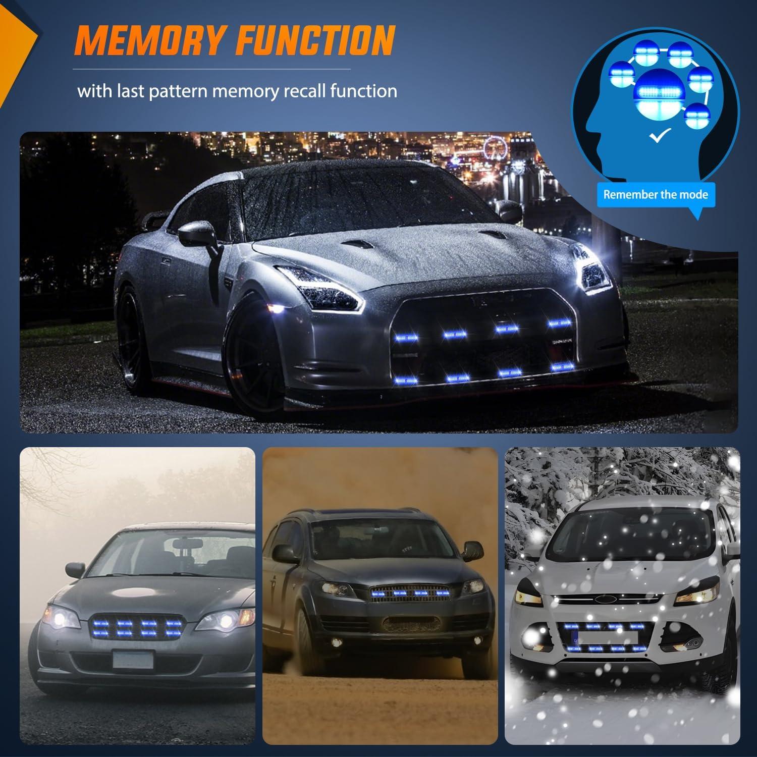 Nilight 8PCS LED Strobe lights 12V Sync Feature Amber White 12 24LED Emergency Hazard Warning Lights with Controller for Cars Trucks RVs Campers, 2 Years Warranty(Blue with Controller)