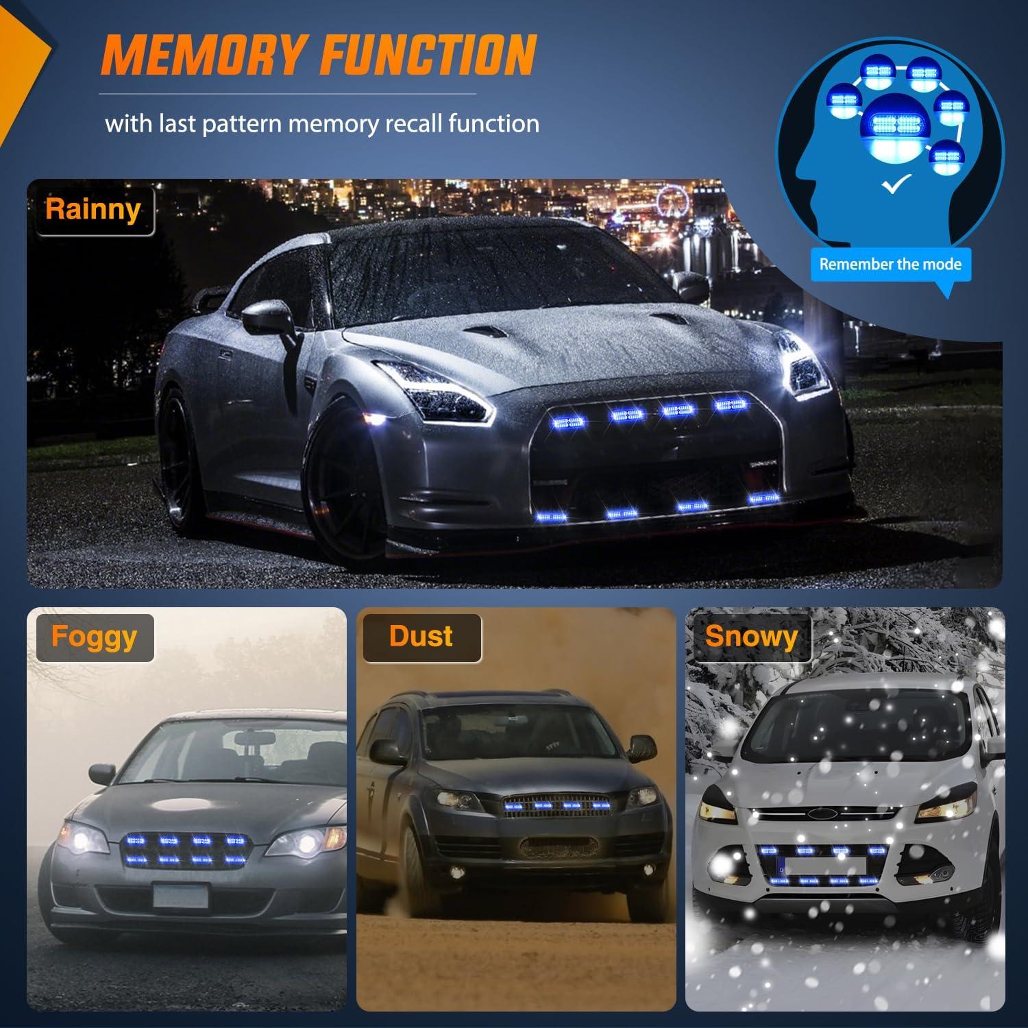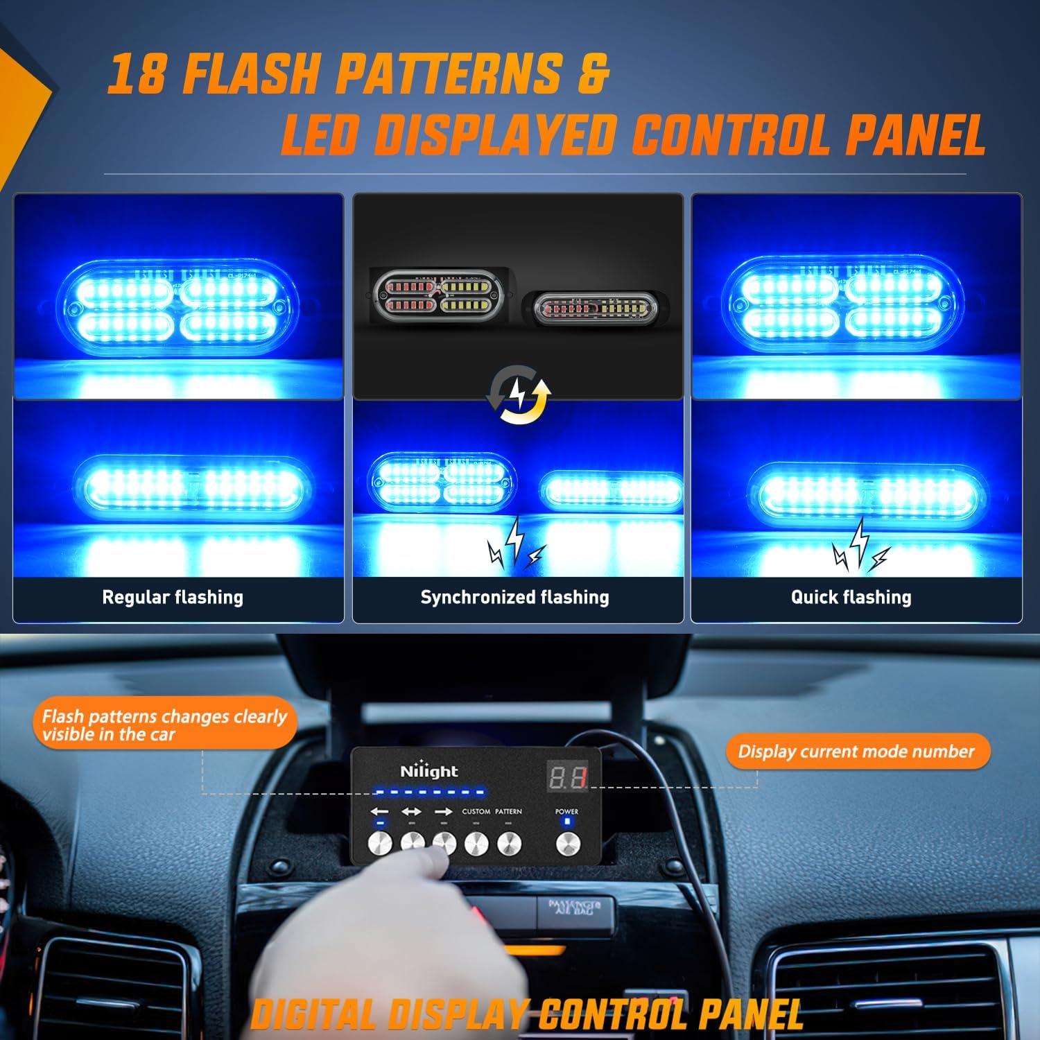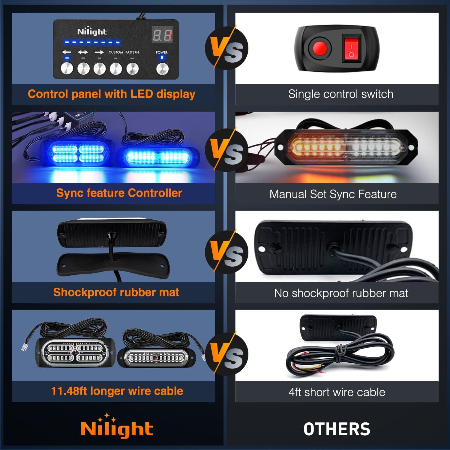 imageNilight 8PCS LED Strobe lights 12V Sync Feature Amber White 12 24LED Emergency Hazard Warning Lights with Controller for Cars Trucks RVs Campers 2 Years WarrantyBlue