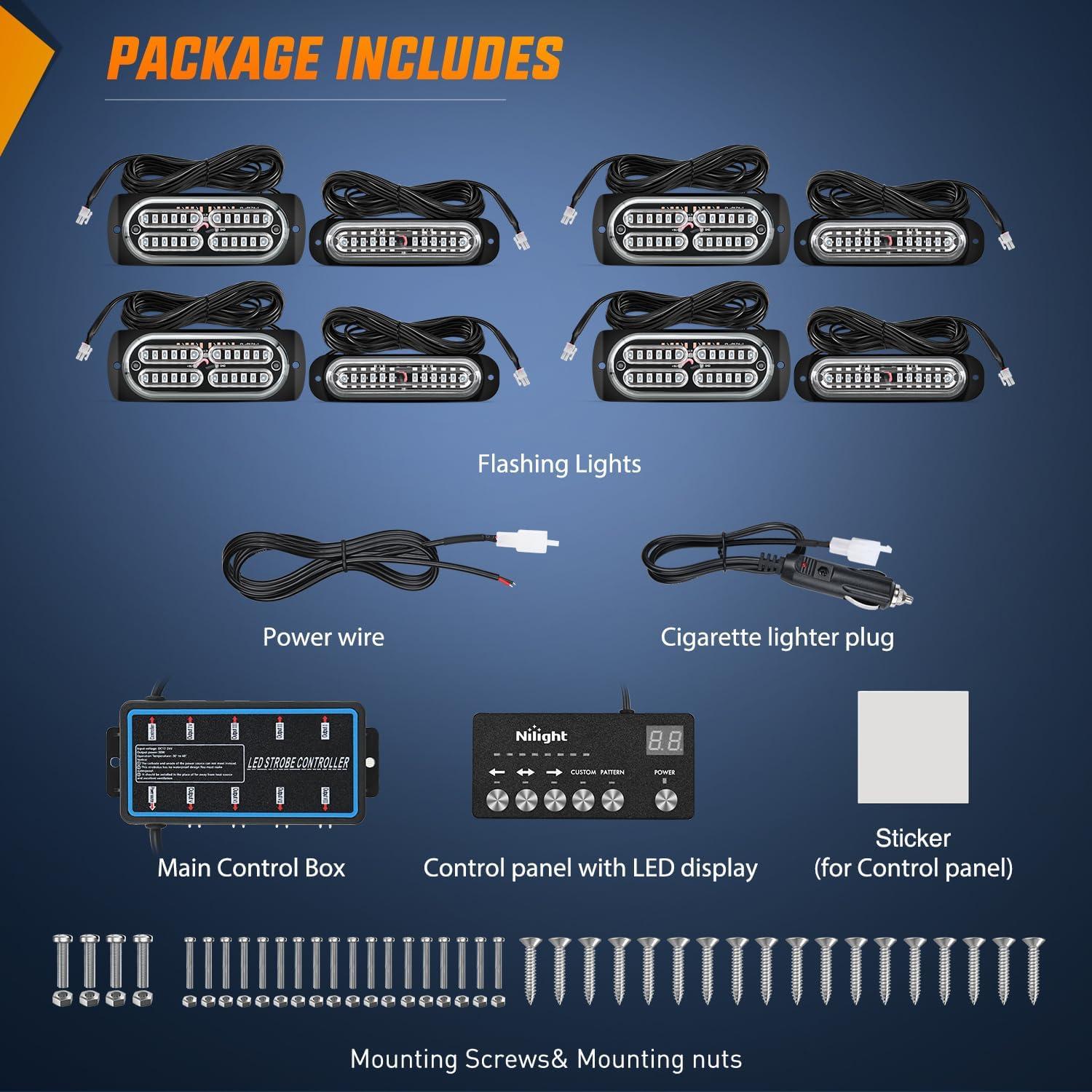 imageNilight 8PCS LED Strobe lights 12V Sync Feature Amber White 12 24LED Emergency Hazard Warning Lights with Controller for Cars Trucks RVs Campers 2 Years WarrantyAmber Lights wController 8Pcs