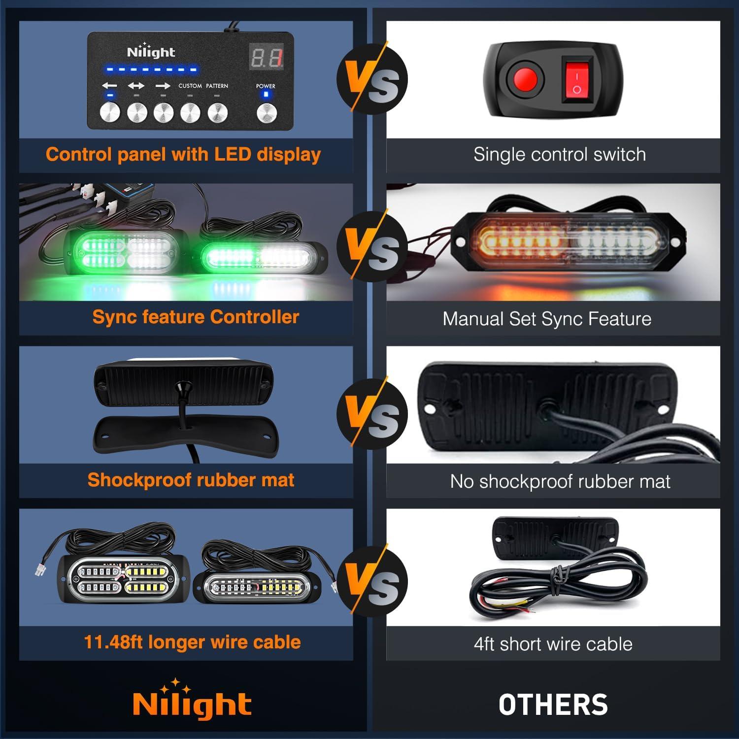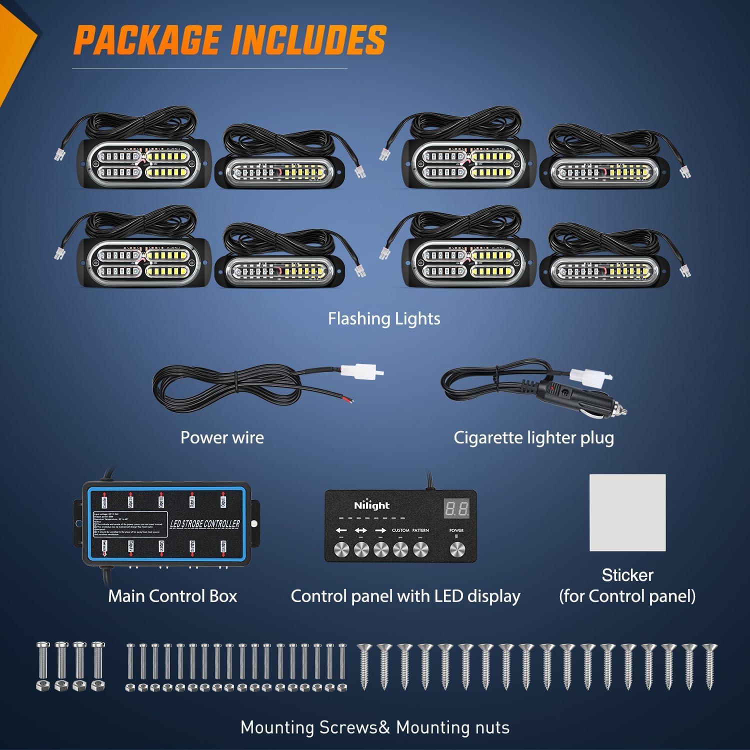 imageNilight 8PCS LED Strobe lights 12V Sync Feature Amber White 12 24LED Emergency Hazard Warning Lights with Controller for Cars Trucks RVs Campers 2 Years WarrantyRedWhite Lights 8Pcs