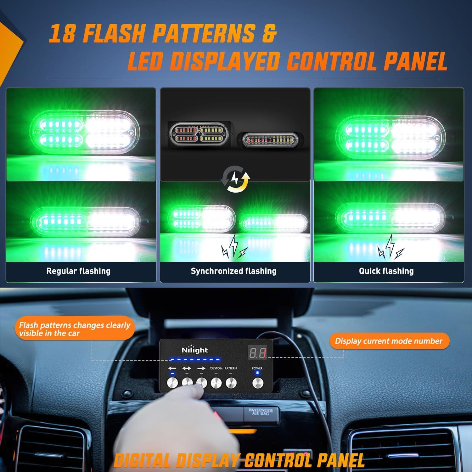 imageNilight 8PCS LED Strobe lights 12V Sync Feature Amber White 12 24LED Emergency Hazard Warning Lights with Controller for Cars Trucks RVs Campers 2 Years WarrantyGreenWhite Lights wController 8Pcs
