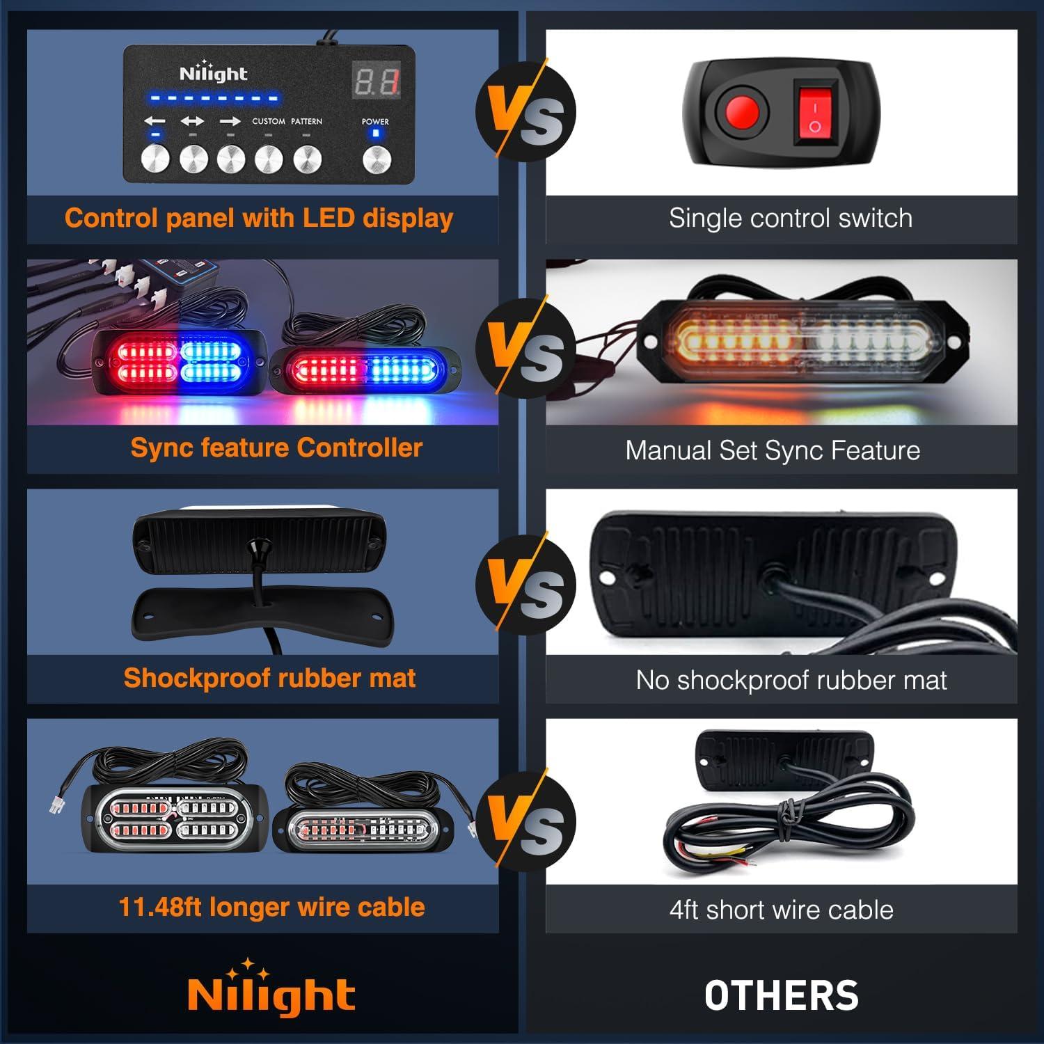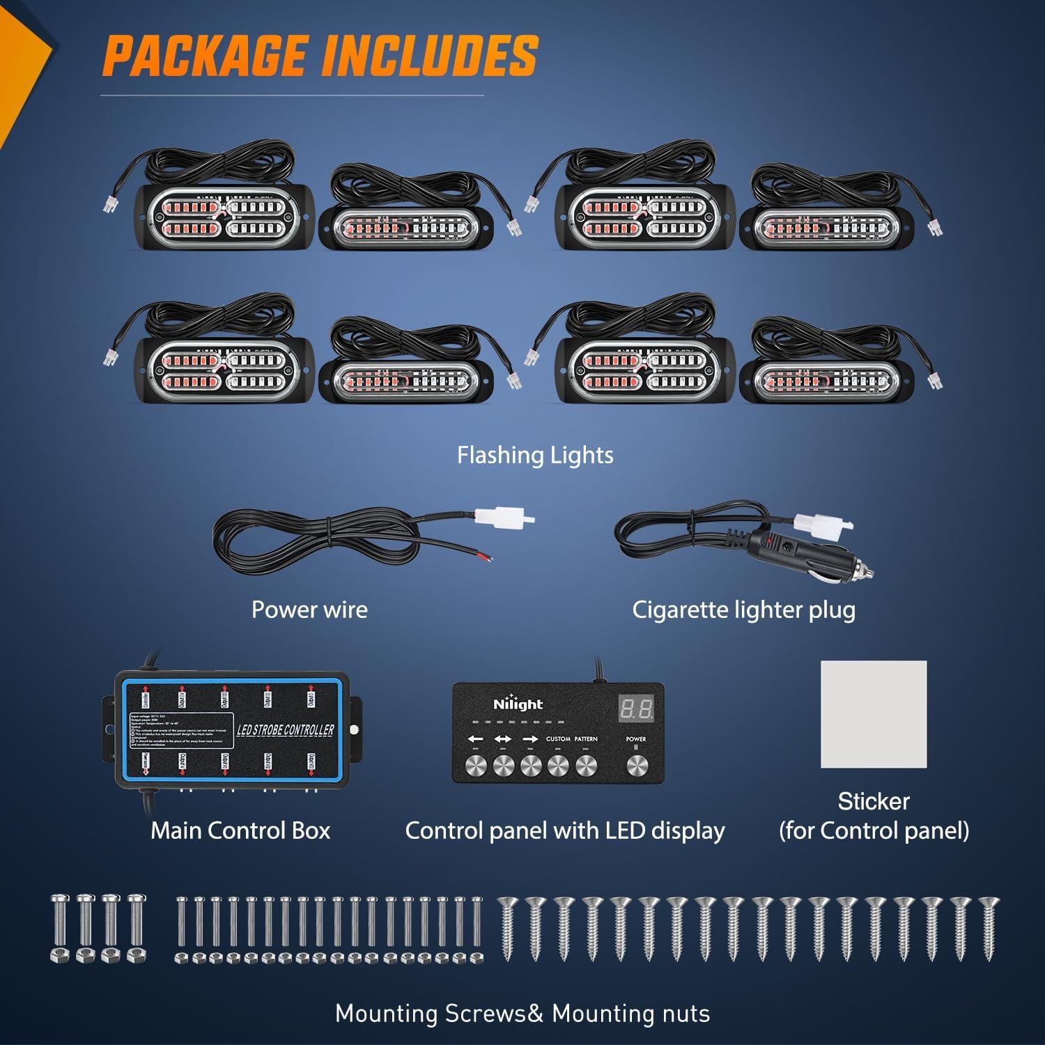 imageNilight 8PCS LED Strobe lights 12V Sync Feature Amber White 12 24LED Emergency Hazard Warning Lights with Controller for Cars Trucks RVs Campers 2 Years WarrantyRedBlue