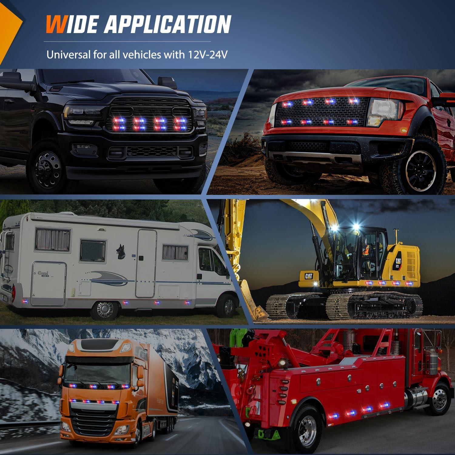 Applications: This strobe light is suitable for postal and city service workers or emergency cars and trucks, construction vehicles, tractors, snowplows or any 12V-24V vehicles. It can be mounted on the side of truck or the grille in front of the vehicle.