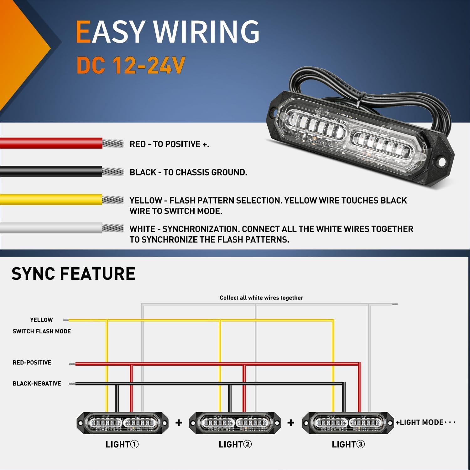 Easy to Install: Upgrade design, this emergency strobe lights with main control box for free wiring installation, it can perfectly synchronized your lights. 11.48FT long wire of each raw of light can meet the installation needs of various large vehicles. Protective mounting gaskets and screws are included for easy installation.