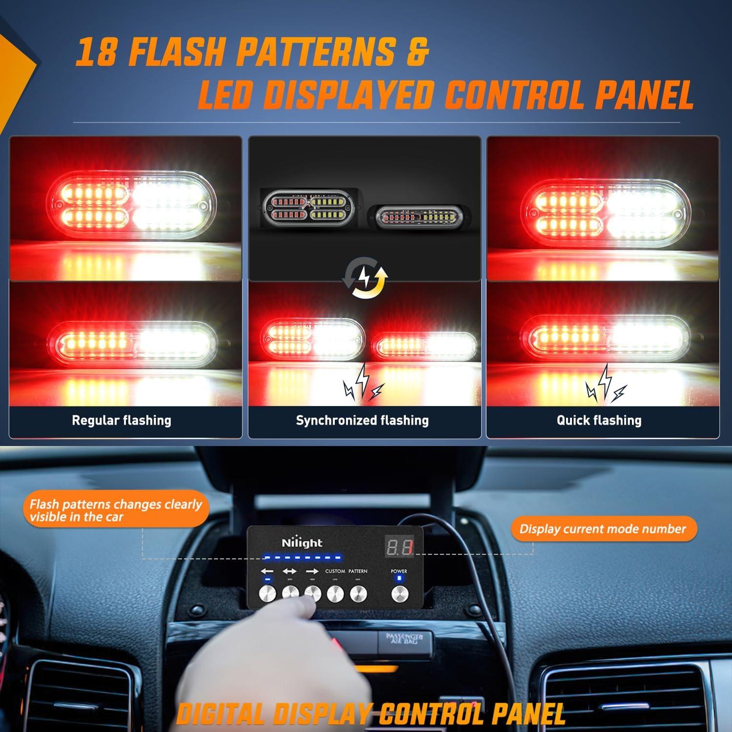 imageNilight 8PCS LED Strobe lights 12V Sync Feature Amber White 12 24LED Emergency Hazard Warning Lights with Controller for Cars Trucks RVs Campers 2 Years WarrantyRedWhite Lights wController 8Pcs