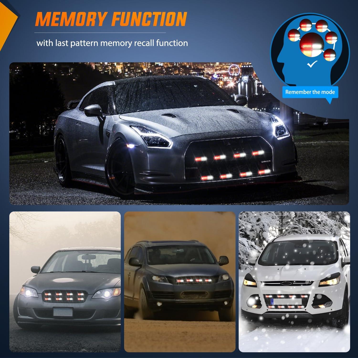 Nilight 8PCS LED Strobe lights 12V Sync Feature Amber White 12 24LED Emergency Hazard Warning Lights with Controller for Cars Trucks RVs Campers, 2 Years Warranty(Red/White with Controller)
