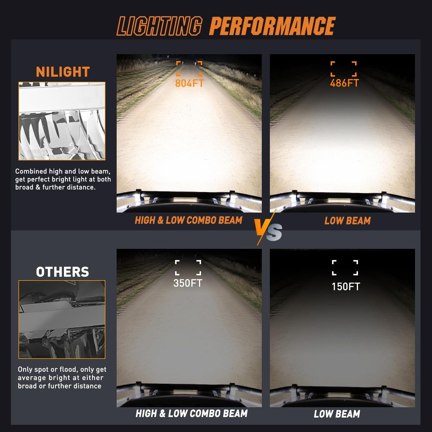 Nilight 9Inch Round Offroad LED Light Hi/Lo Beam with 14AWG Wiring Kit