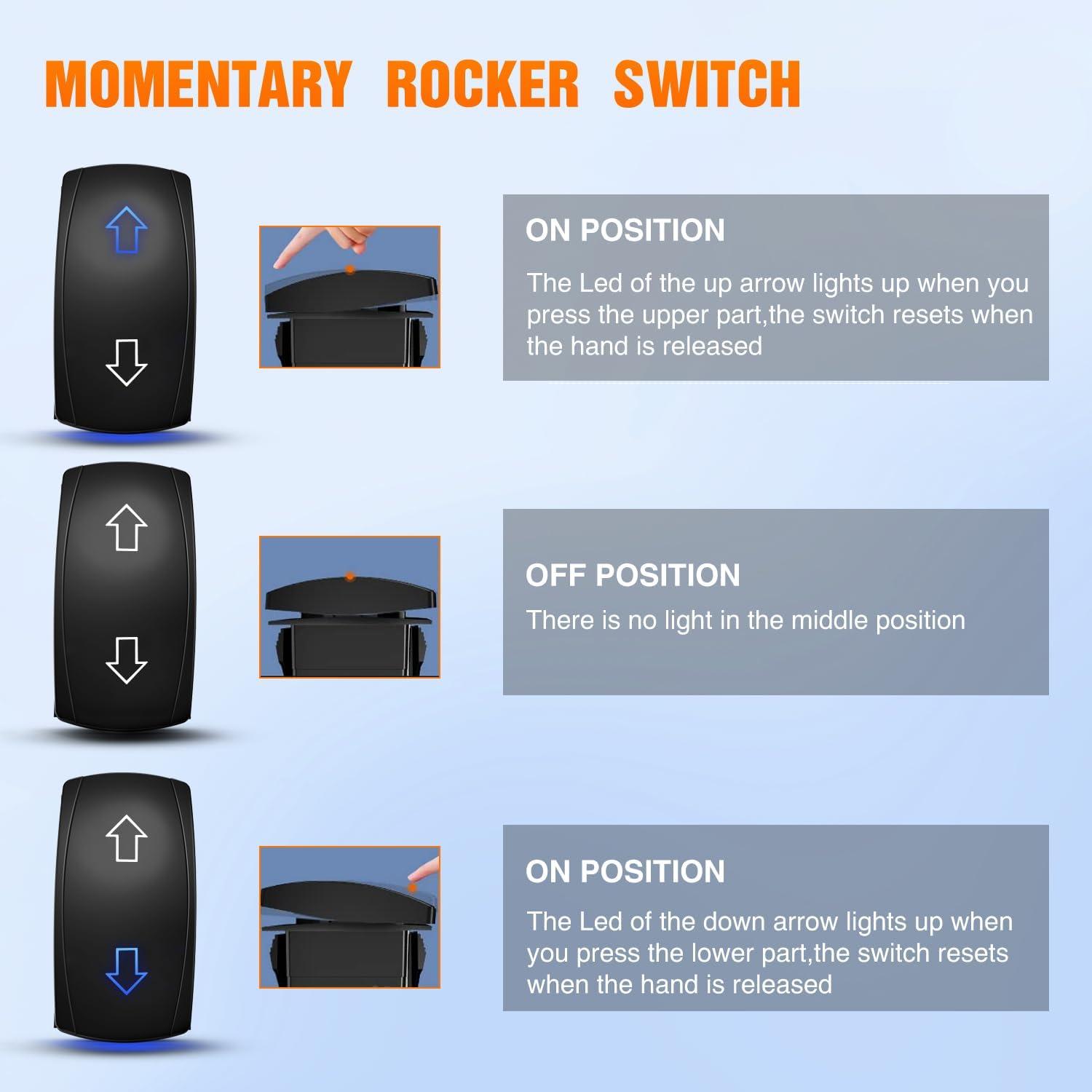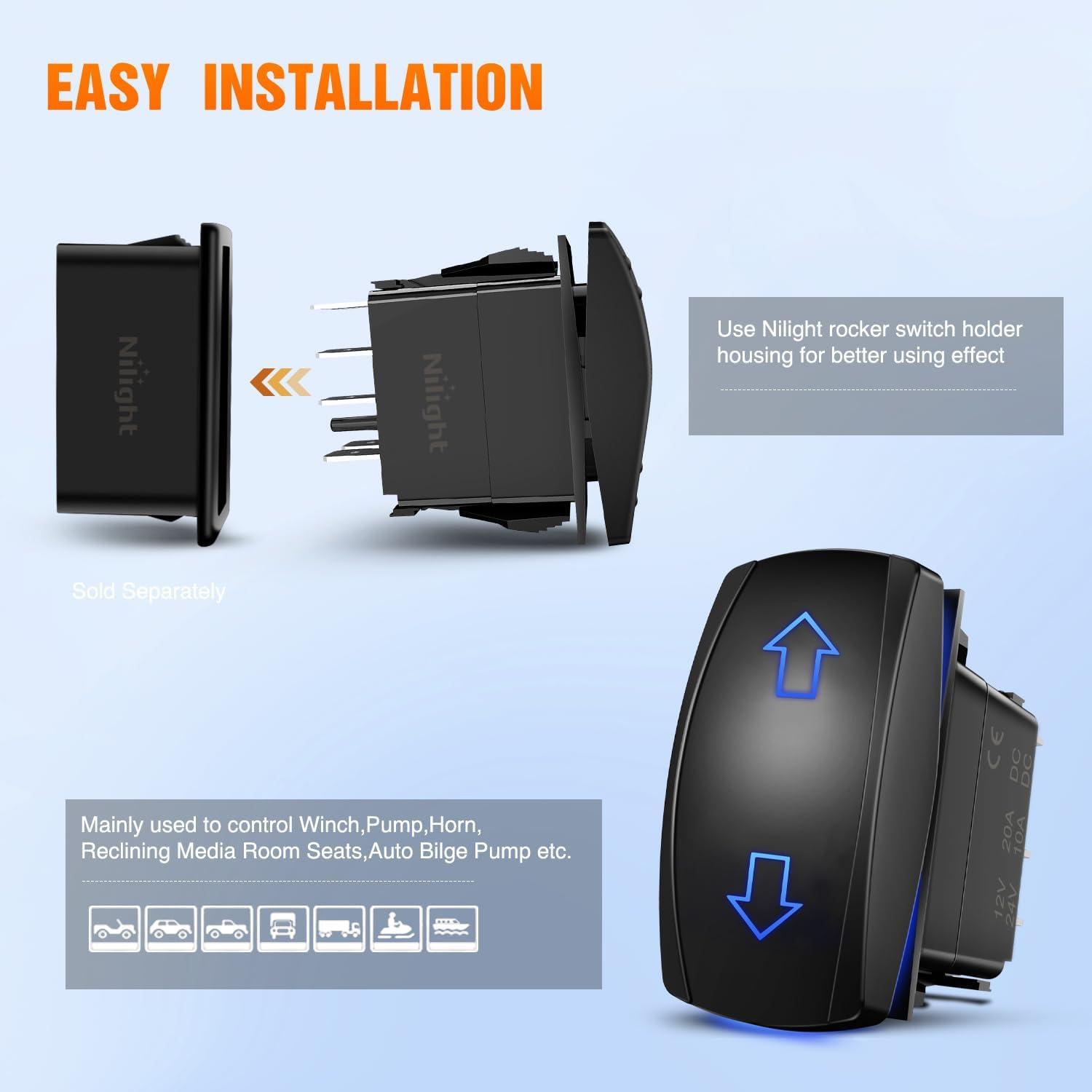 imageNilight Arrows Motor Polarity Reverse Momentary Rocker Switch DPDT 20A 12V 24V 7PIN ON Off ON Toggle Wire Up Down Carling for Car Boat Truck Linear Actuator TrailerArrows Blue with Panel