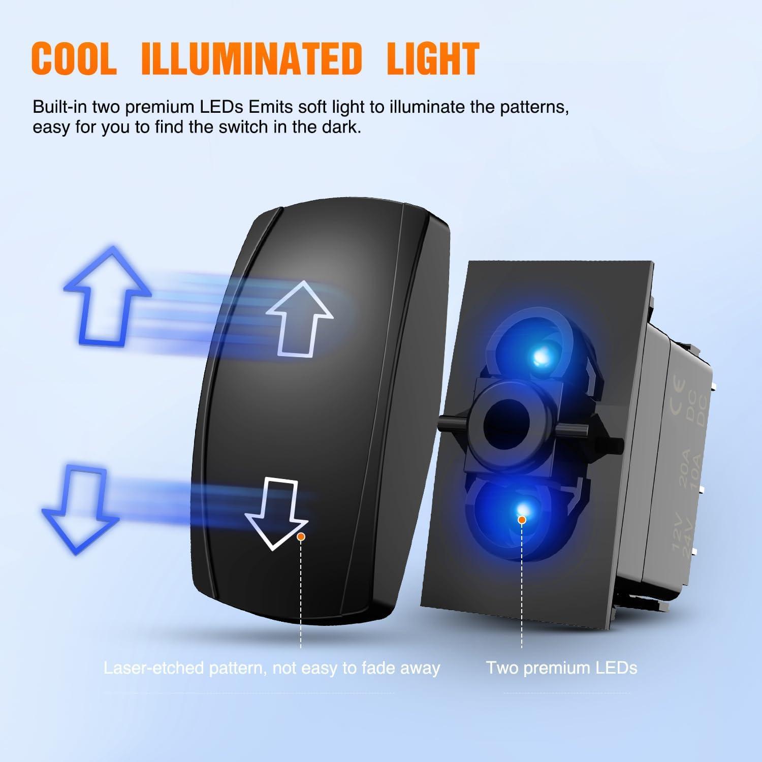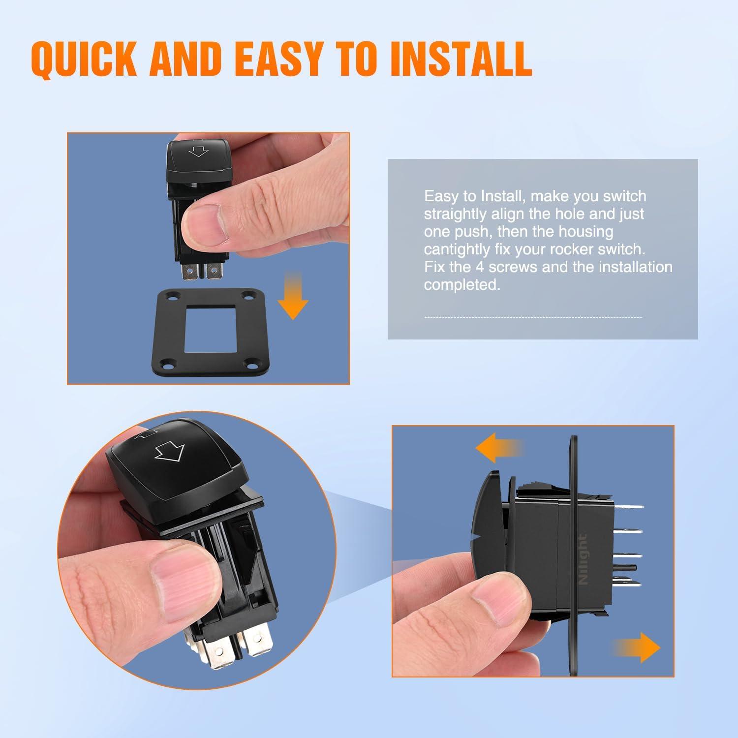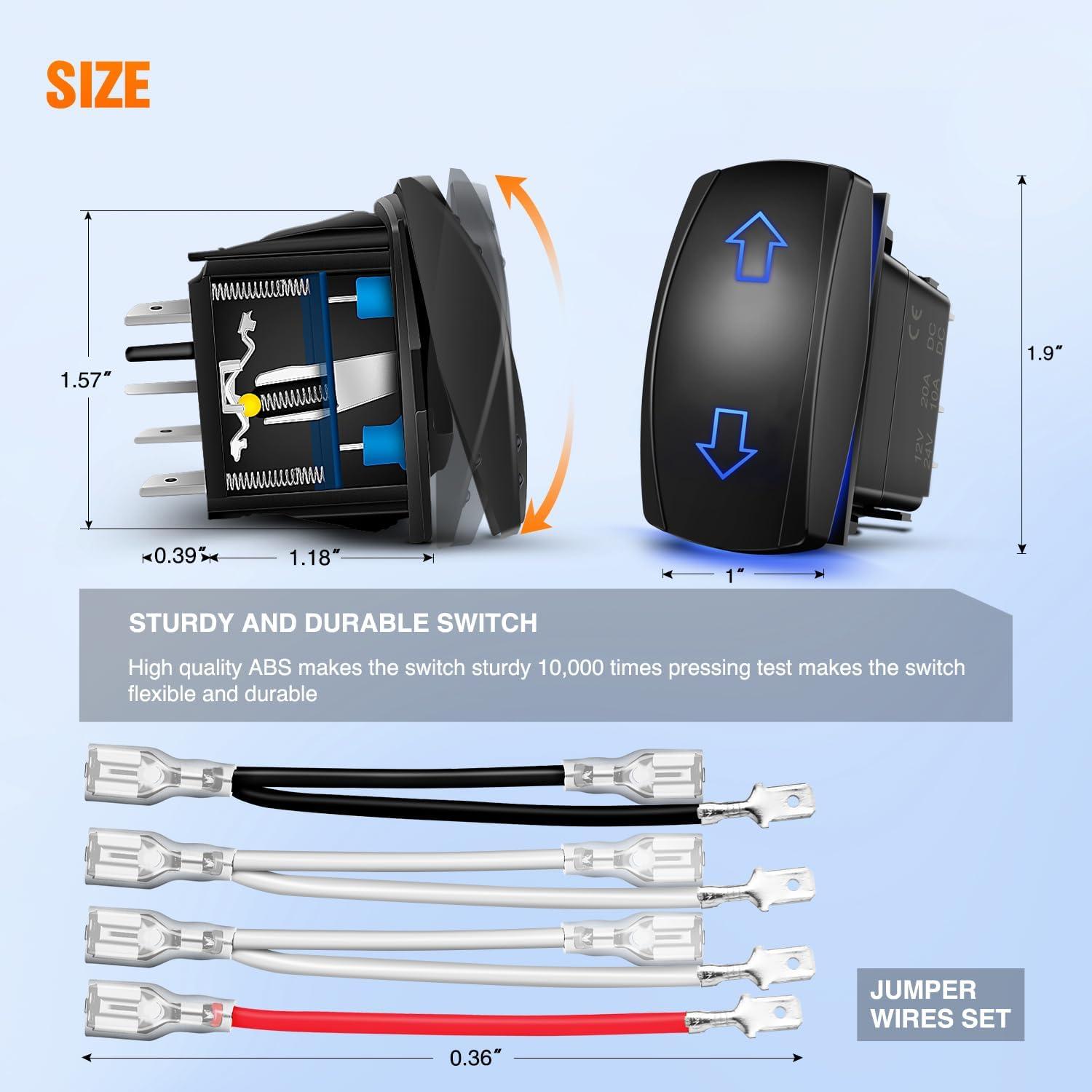 Nilight Arrows Motor Polarity Reverse Momentary Rocker Switch DPDT 20A 12V 24V 7PIN (ON) Off (ON) Toggle Wire Up Down Carling for Car Boat Truck Linear Actuator Trailer(Arrows Blue with Panel)