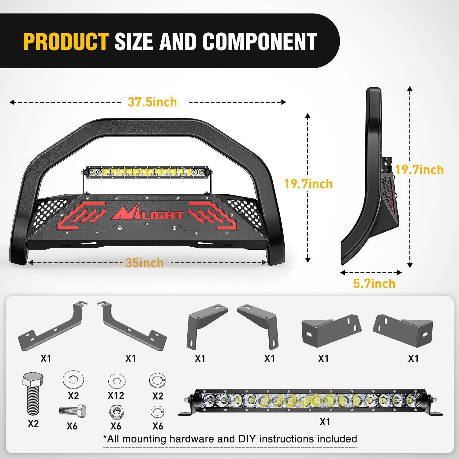 Nilight Bull Bar with Light Bar&License Plate Hole Compatible with Toyota 4Runner 2010-2024 Truck Brush Guard, Front Bumper Push Bar w/Grille Skid Plate Light Mount(Ford F150 2004-2023)