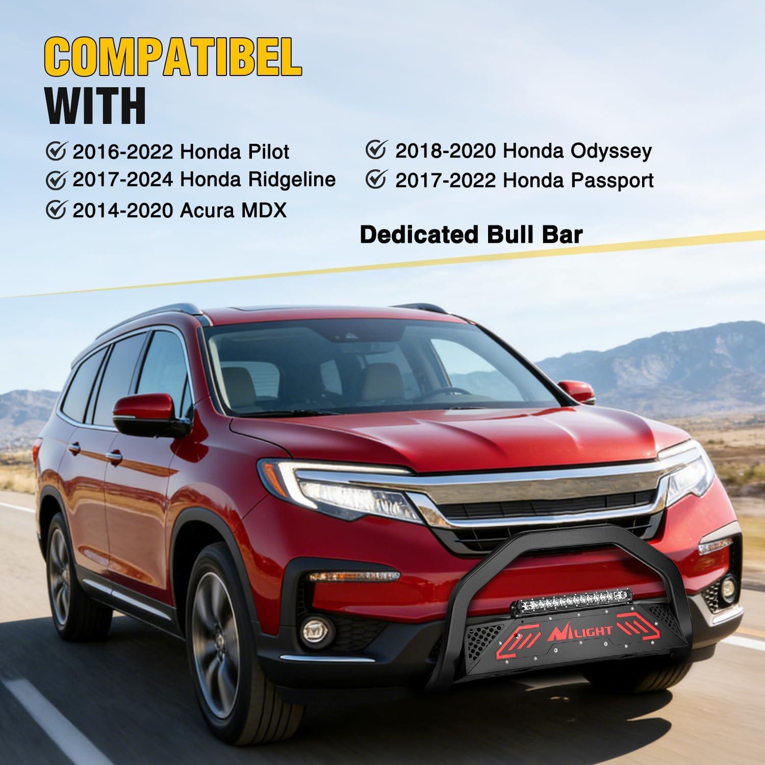 Nilight Bull Bar with Light Bar&License Plate Hole Compatible with Toyota 4Runner 2010-2024 Truck Brush Guard, Front Bumper Push Bar w/Grille Skid Plate Light Mount(Honda Pilot 16-20 Ridgeline 17-24 Odyssey 18-20)