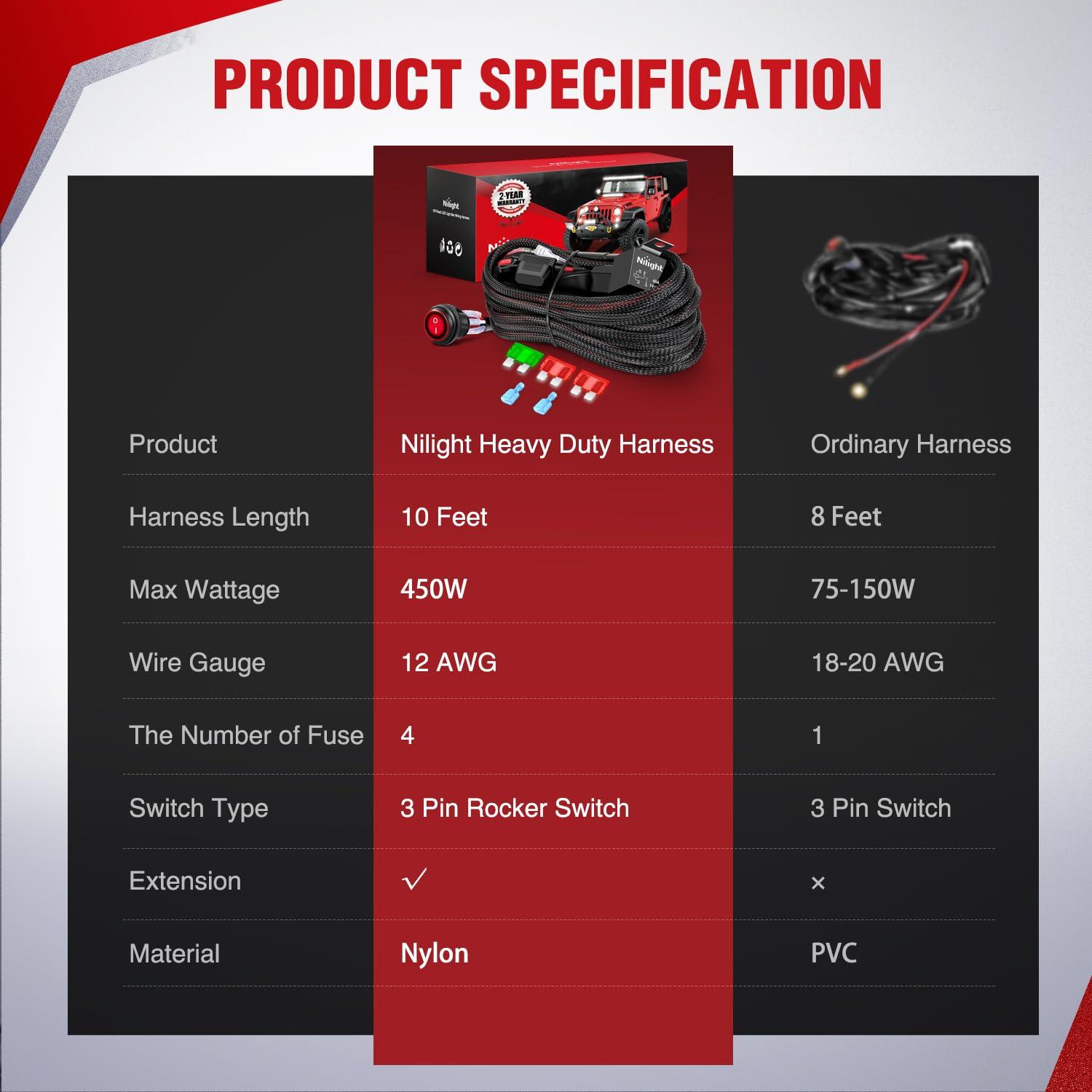imageNilight Copper LED Light Bar Wiring Harness Kit  1 Lead 12AWG Heavy Duty 12V On Off Switch Power Relay Blade Fuse for Off Road LED Work Light2 Years Warranty12AWG1 Lead