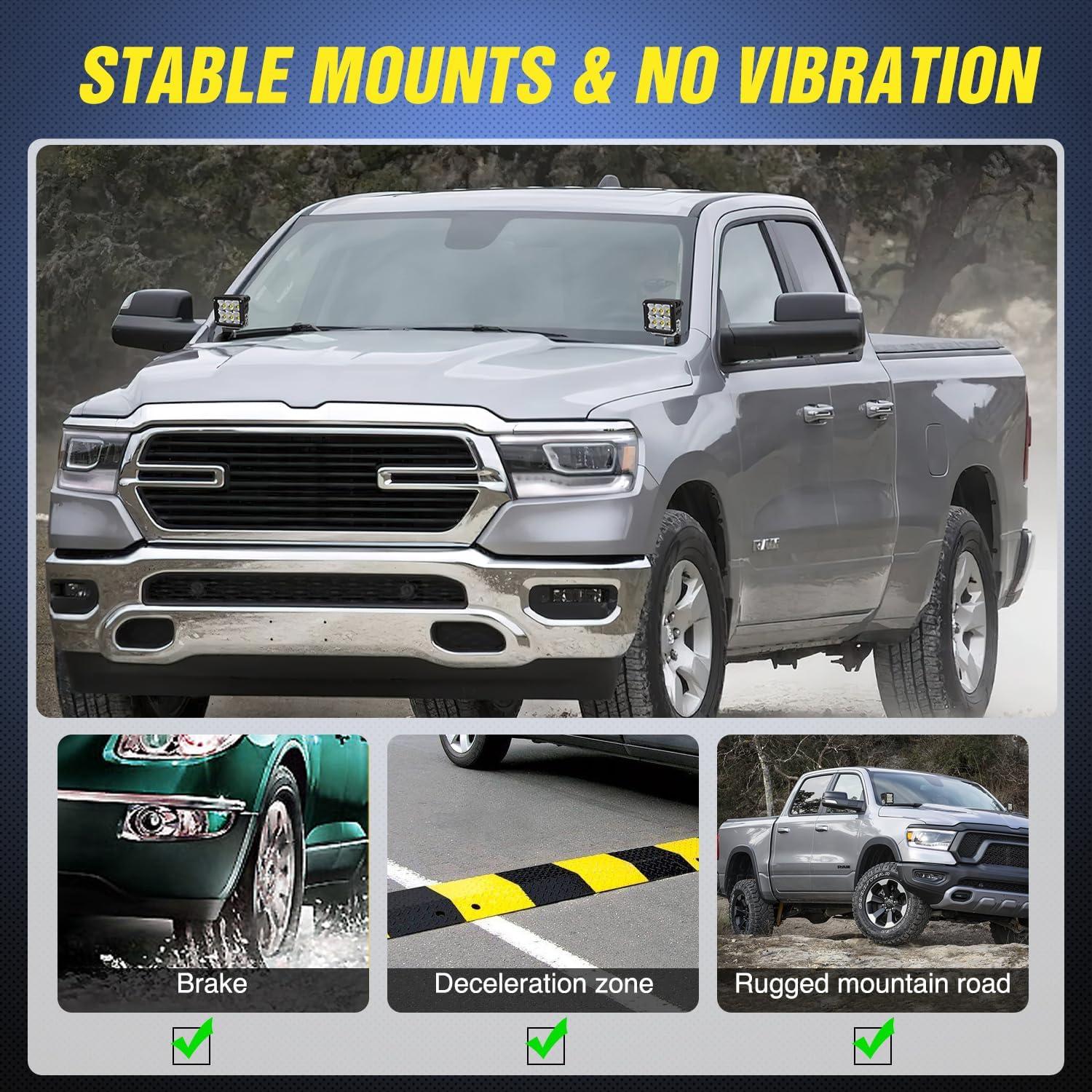 Upgrade & Suitable for More: We thickened the brackets to allow them to bear heavier lights, and enlarged the holes to fit most LED lights from 2inch to 7inch (i.e. suitable for M6, M8, M10 size screws)