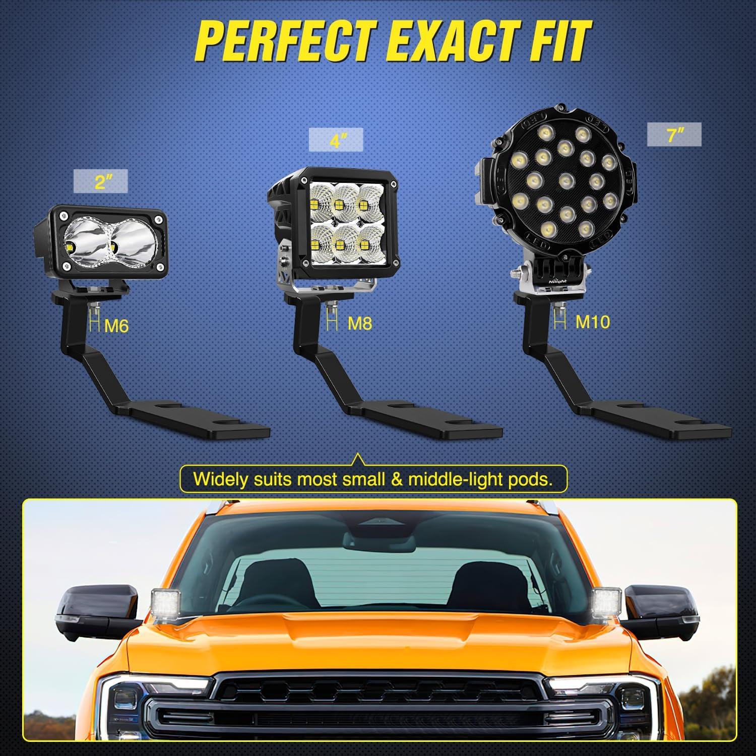 Nilight Ditch Light Brackets Hood Hinges Mount Bracket Kit for Auxiliary Offroad LED Pods Work Lighting Compatible with Ford F-150 2004-2014 Ford 1st Gen SVT Raptor 2010-2014(For Ford Ranger 2019-2023)