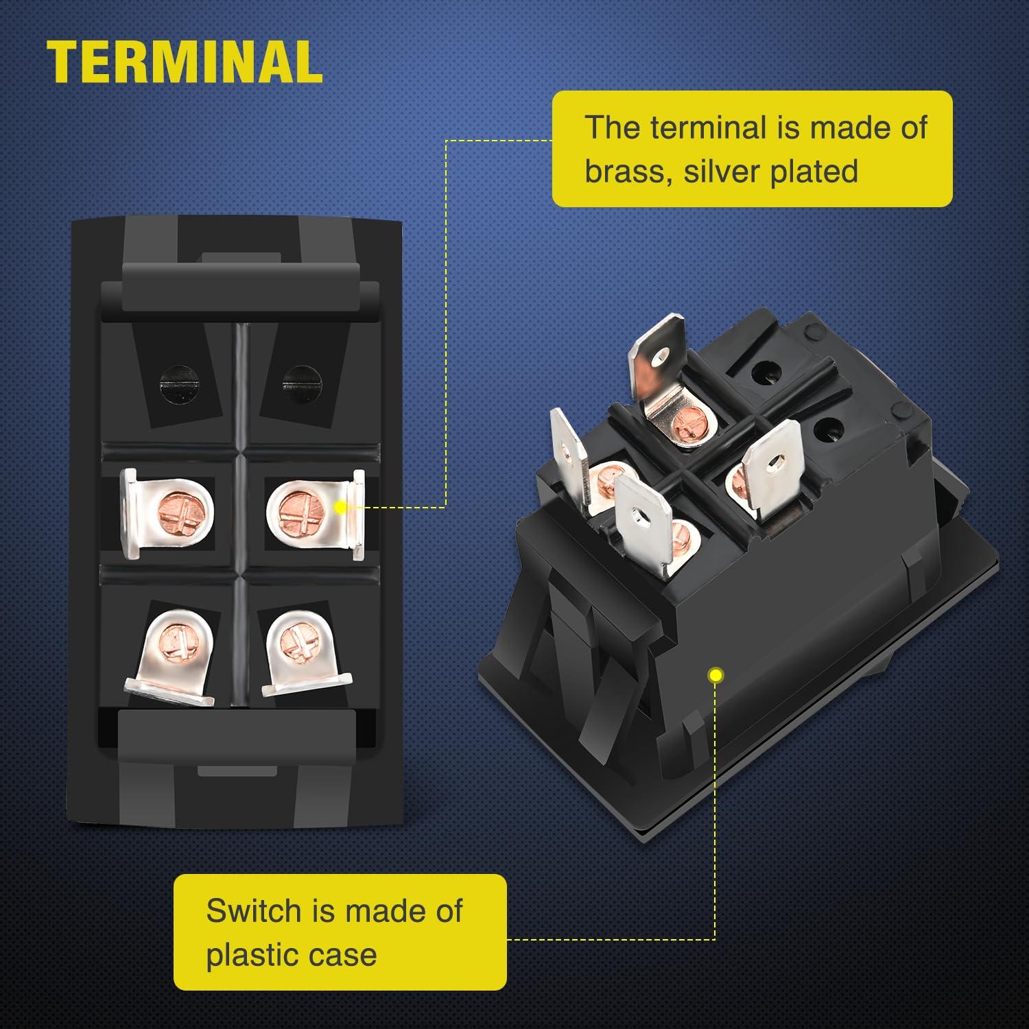 Amp rating for the switch: 12V DC/20AMP; 24V DC/10AMP.