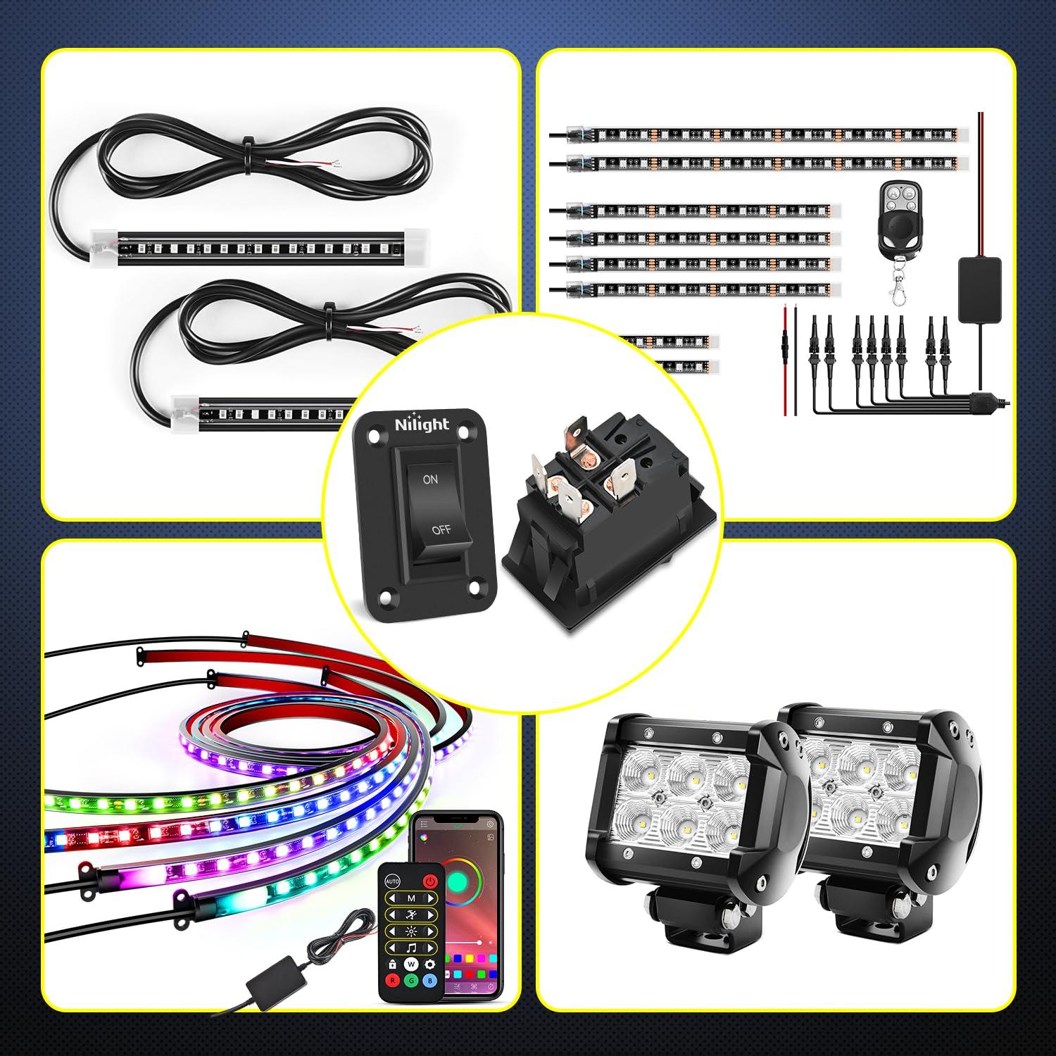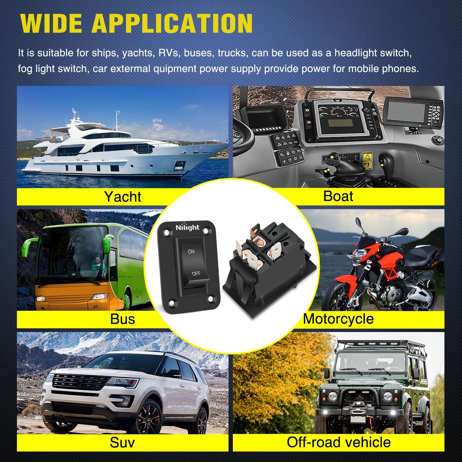 Nilight rocker switch Mainly used together with wiring harness to control Winch, Pump, Horn, Reclining Media Room Seats, Auto Bilge Pump, or led work lights, headlights, taillights, etc.