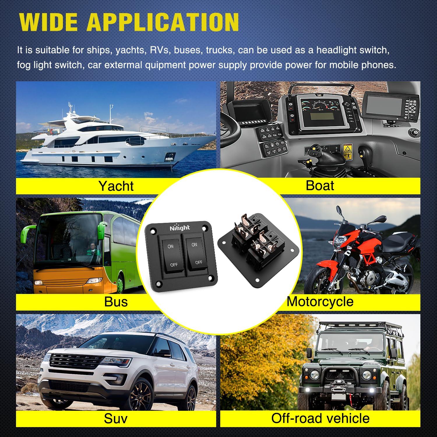 Nilight rocker switch Mainly used together with wiring harness to control Winch, Pump, Horn, Reclining Media Room Seats, Auto Bilge Pump, or led work lights, headlights, taillights, etc.