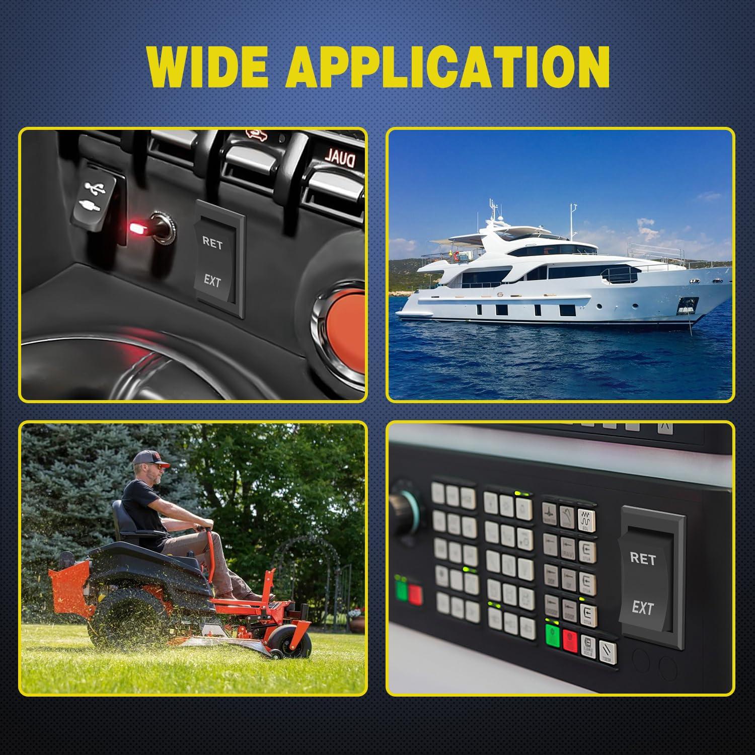 Wide range of application: Universal fit for all cars, RVs, SUVs, ATVs, UTVs, Cans, Buses, Marine boats, Yachts, Trailers, Jeeps, Prerunners, Campers, Caravans etc; Mainly used to control Winch, Pump, Horn, Reclining Media Room Seats, Auto Bilge Pump or led light bar, led work lights, fog lamps, headlights, taillights and auxiliary lamps, etc.