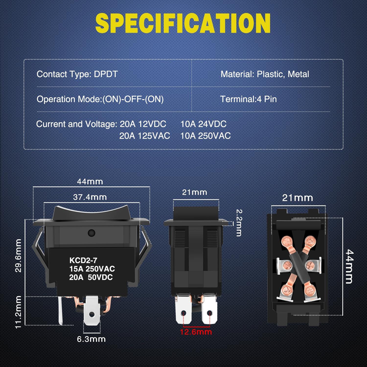 Dual Operation: This momentary electrical system switch is used for jogging or inching operations. A DPDT switch is equivalent to two SPDT switches. It routes two separate circuits. Connecting each of two inputs to one of two outputs. The position of the switch determines the number of ways in which two contact can be routed. Always make sure you are using a switch and wire sufficient to handle the load you are carrying. In higher draw applications, a relay may be needed.