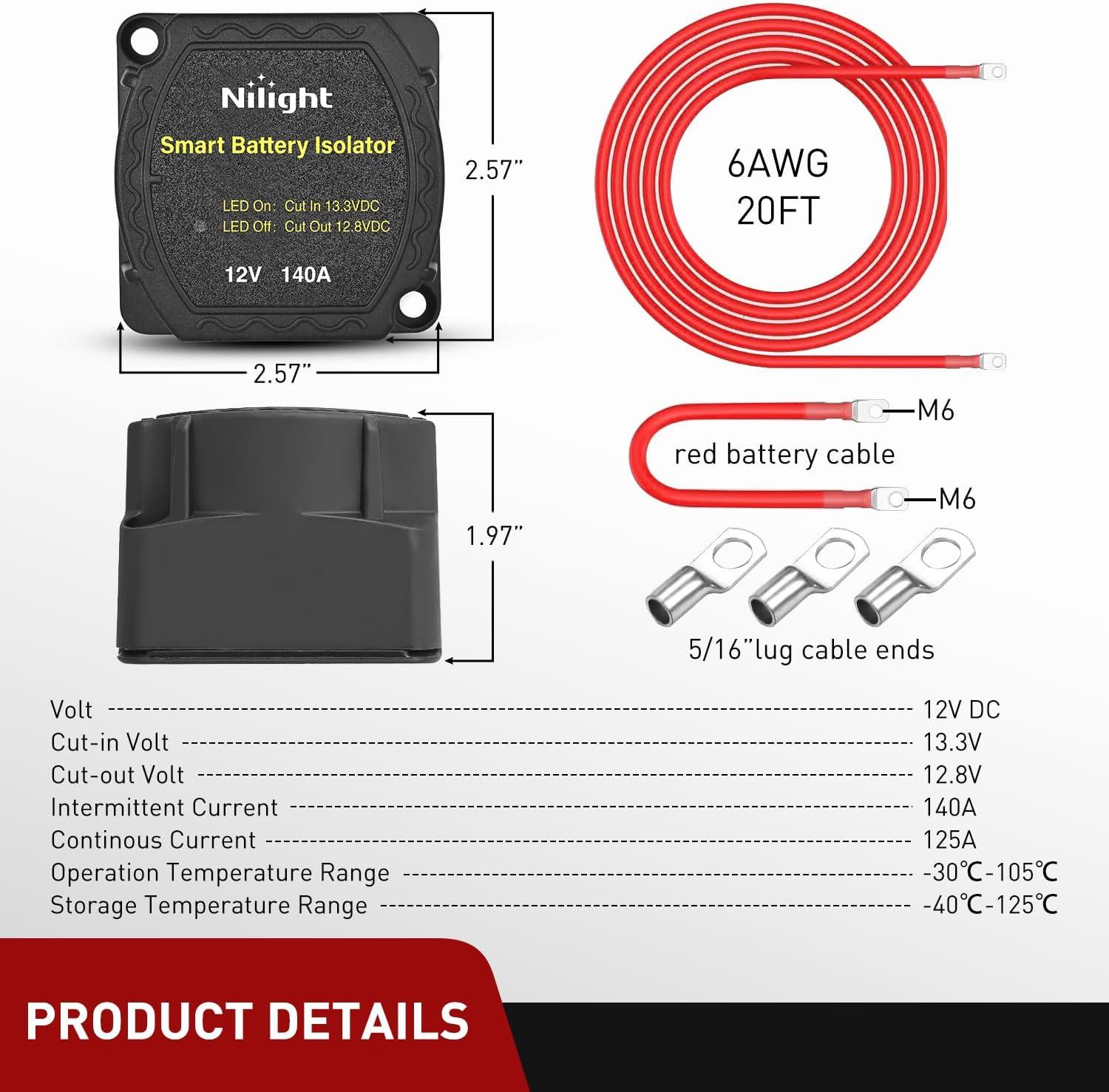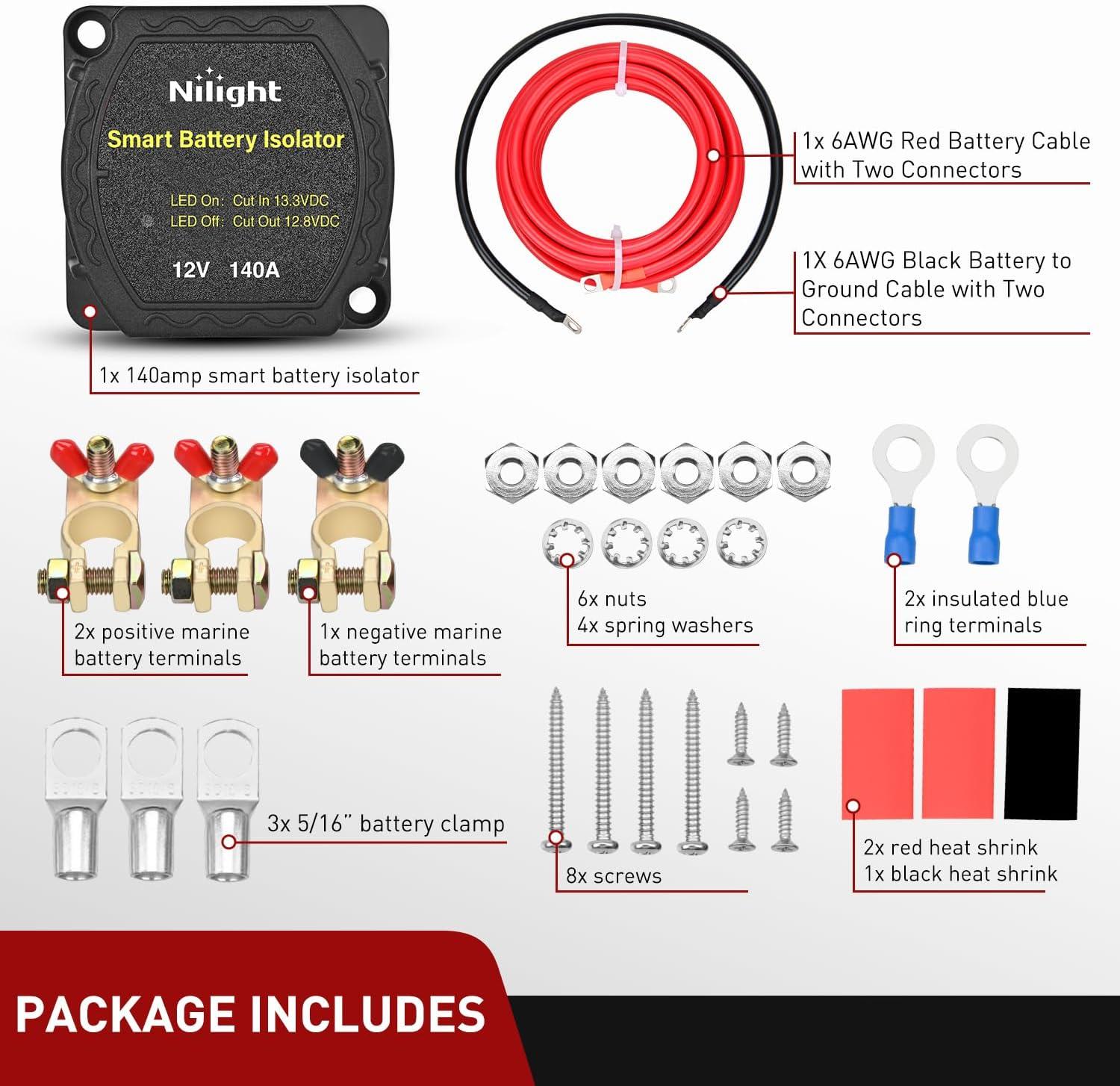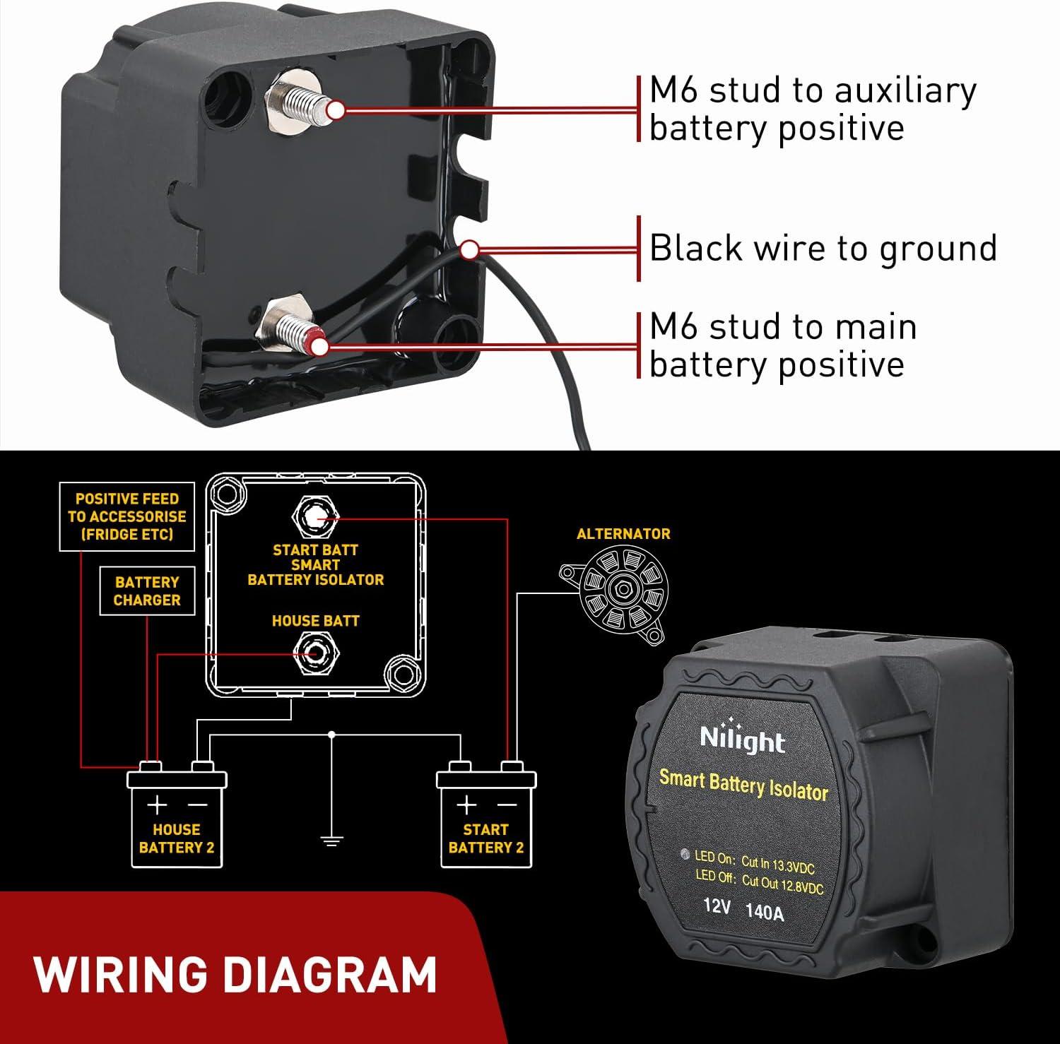 Wide Application: Designed for 12V dual battery systems(compatible with lithium batteries); allows two power sources to charge from one alternator without battery drain concerns. Suitable for 12v camper van trucks, caravans, RV, ATV, UTV, Boat and camping applications