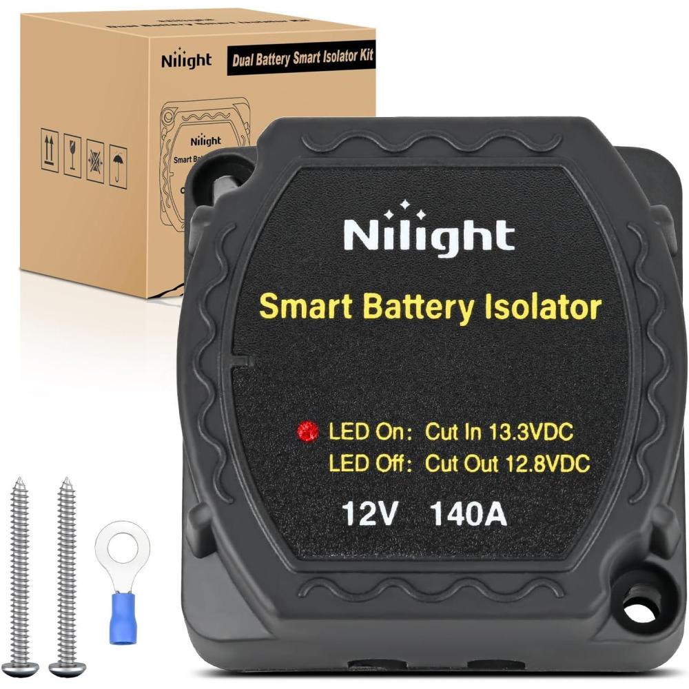 imageNilight Dual Battery Isolator Kit Smart Adjustable 12V 140 AMP Auto Manual Voltage Sensitive Relay VSR Automatic Disconnect Switch Delay Setting Waterproof for Truck Car Van RV ATV UTV Marine Boat140 Amp