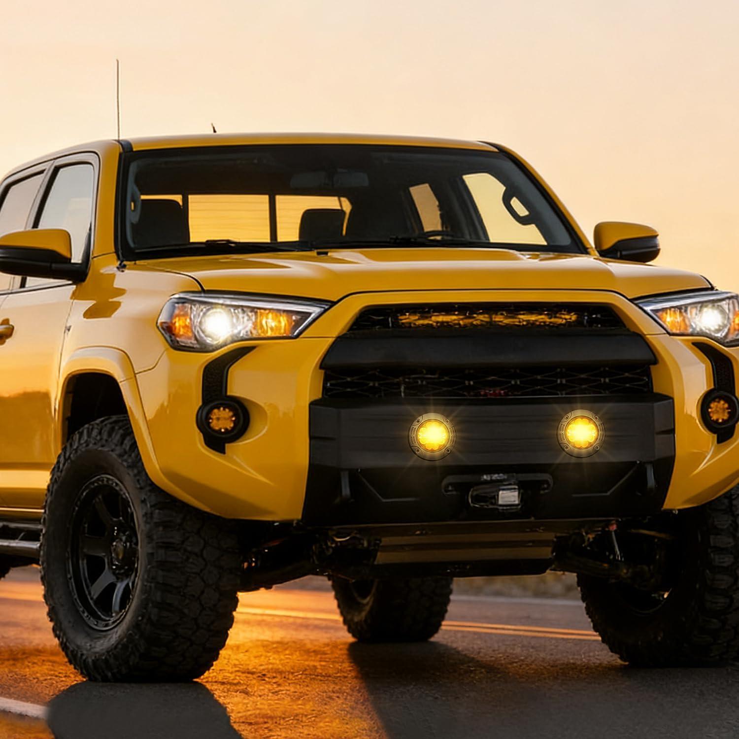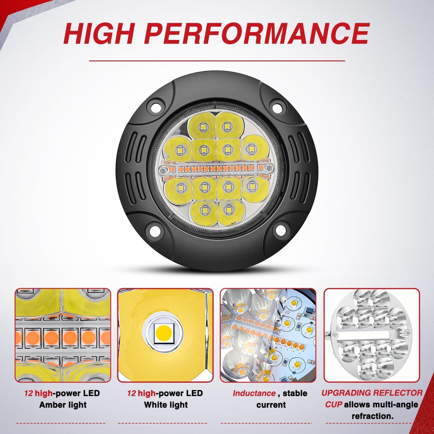 Perfect combo beam: High-power white & amber LEDs pair far-reaching spotlight and wide floodlight for brighter, longer illumination. 3 modes (White/Amber/White+Amber) fit night drives, off-road trails, or fog—keeps you visible and safe in any situation