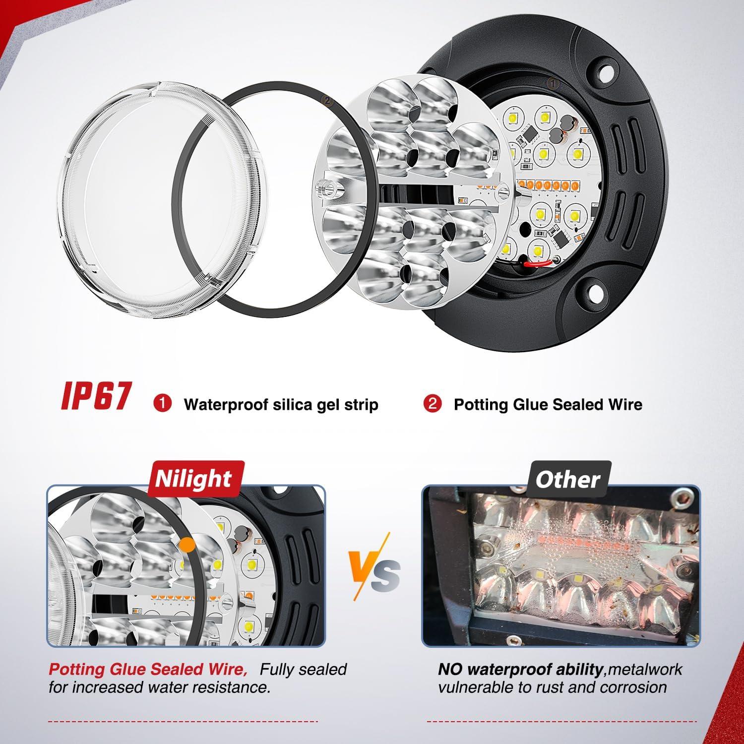 imageNilight Flush Mount LED Light Pods 2PCS 6 Inch 39W Amber White 3 Lighting Modes Fog Lights Spot Flood Beam with Dual Control 18AWG Wiring Harness for Truck Pickup Golf Cart UTV ATV SUV Boat 4x4 CarAmberWhite 3 Modes 47 Round