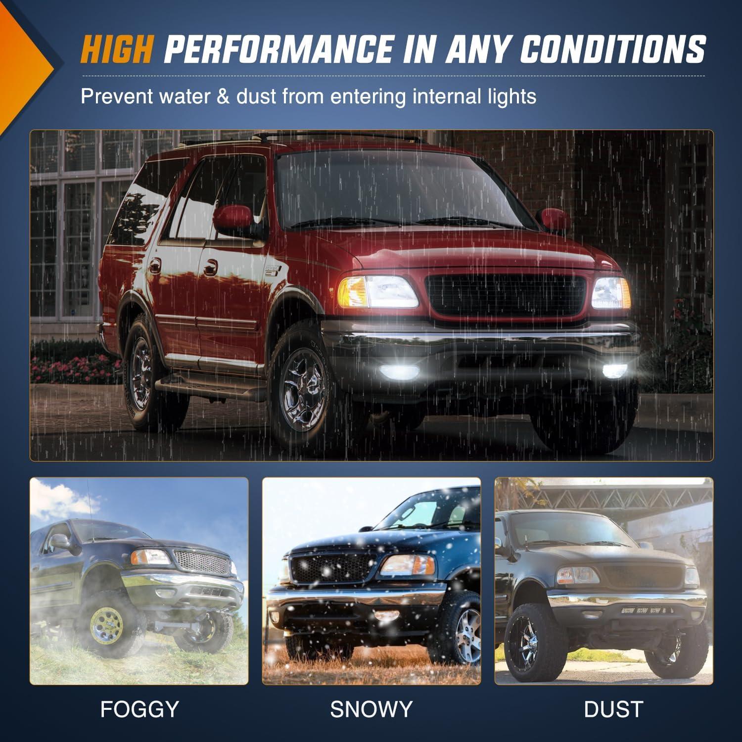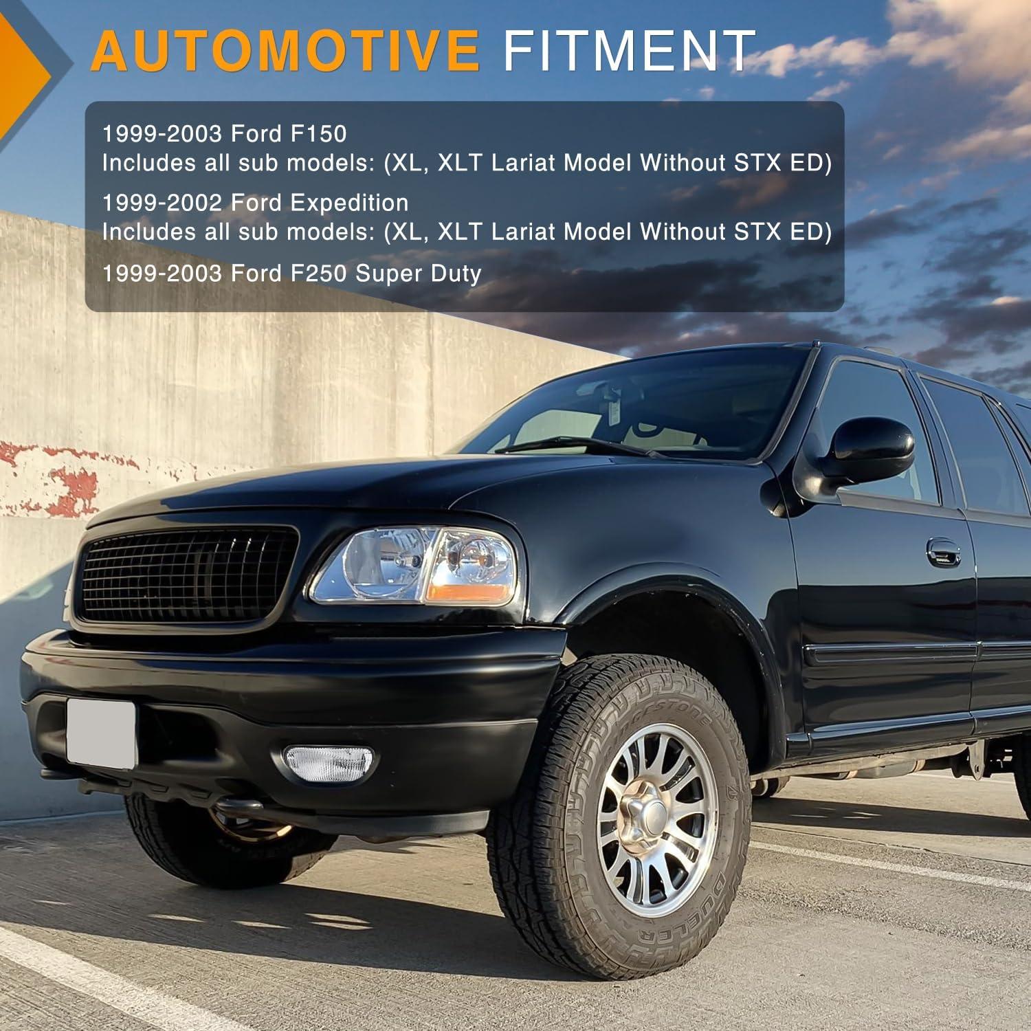 Vehicle fitment: The fog light assembly is compatible with 1999-2003 Ford F150 (XL, XLT Lariat Model Without STX ED), 2004 Ford F150 Heritage, 1999-2003 Ford F250 Super Duty, 1999-2002 Ford Expedition (XL, XLT Lariat Model Without STX ED). Please confirm the vehicle fitment before ordering.