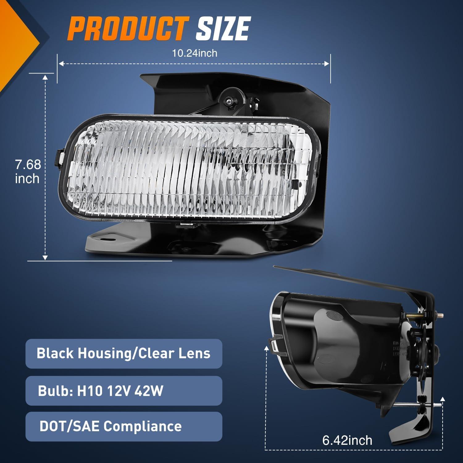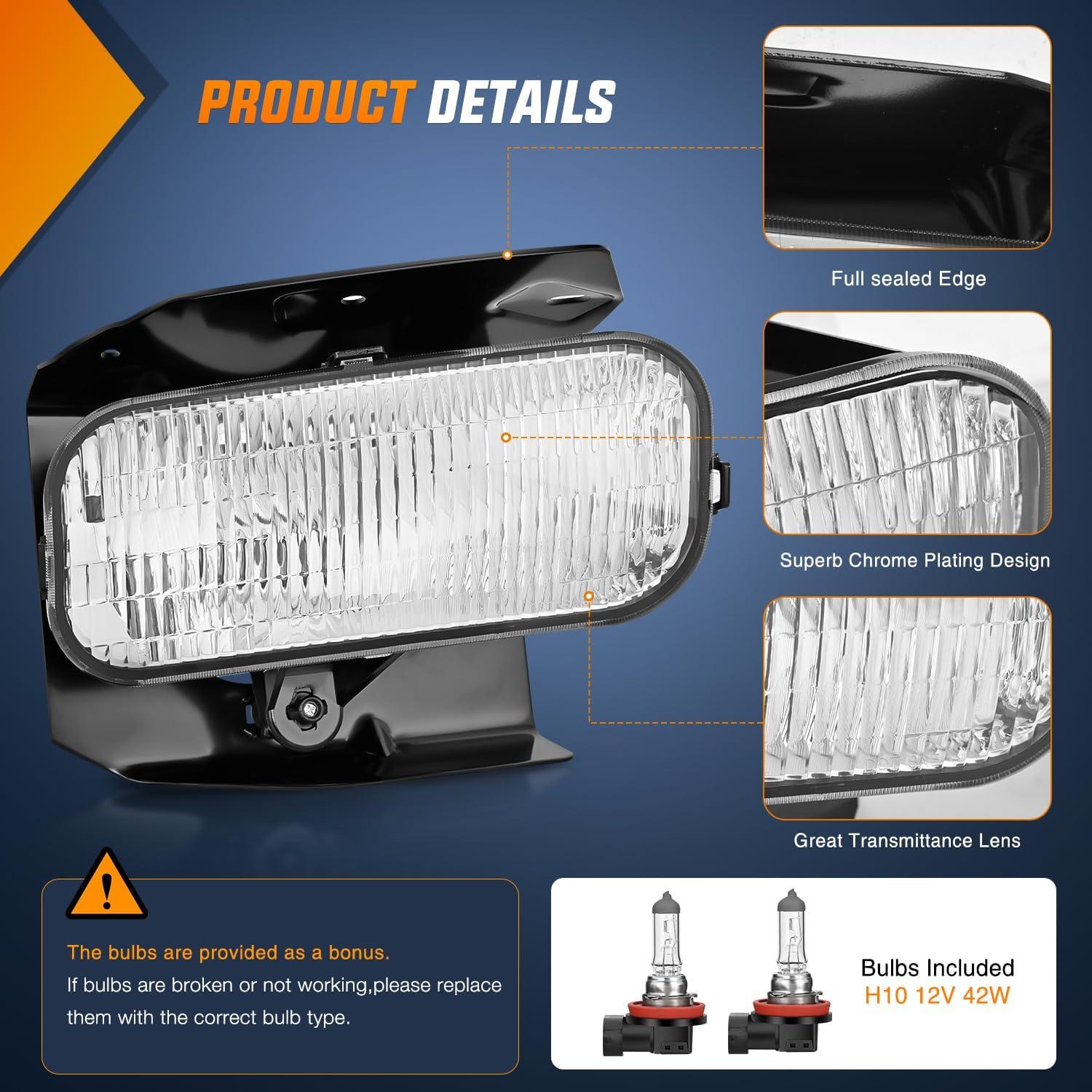 Packages Includes: A pair of fog lights (driver's side and passenger's side) with H10 bulbs. Professional installation is highly recommended.